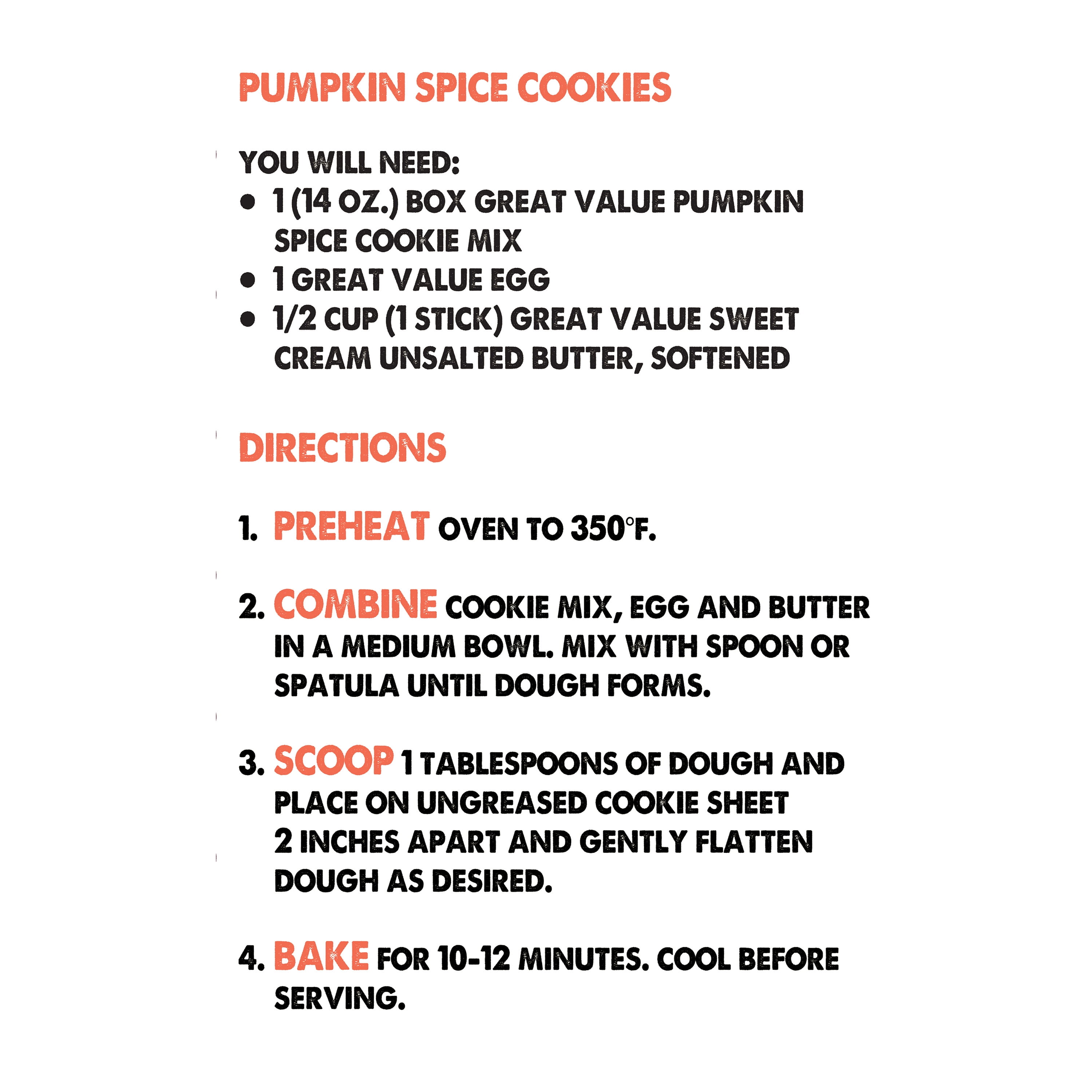 Great Value Pumpkin Spice Cookie Mix, 14 oz Box