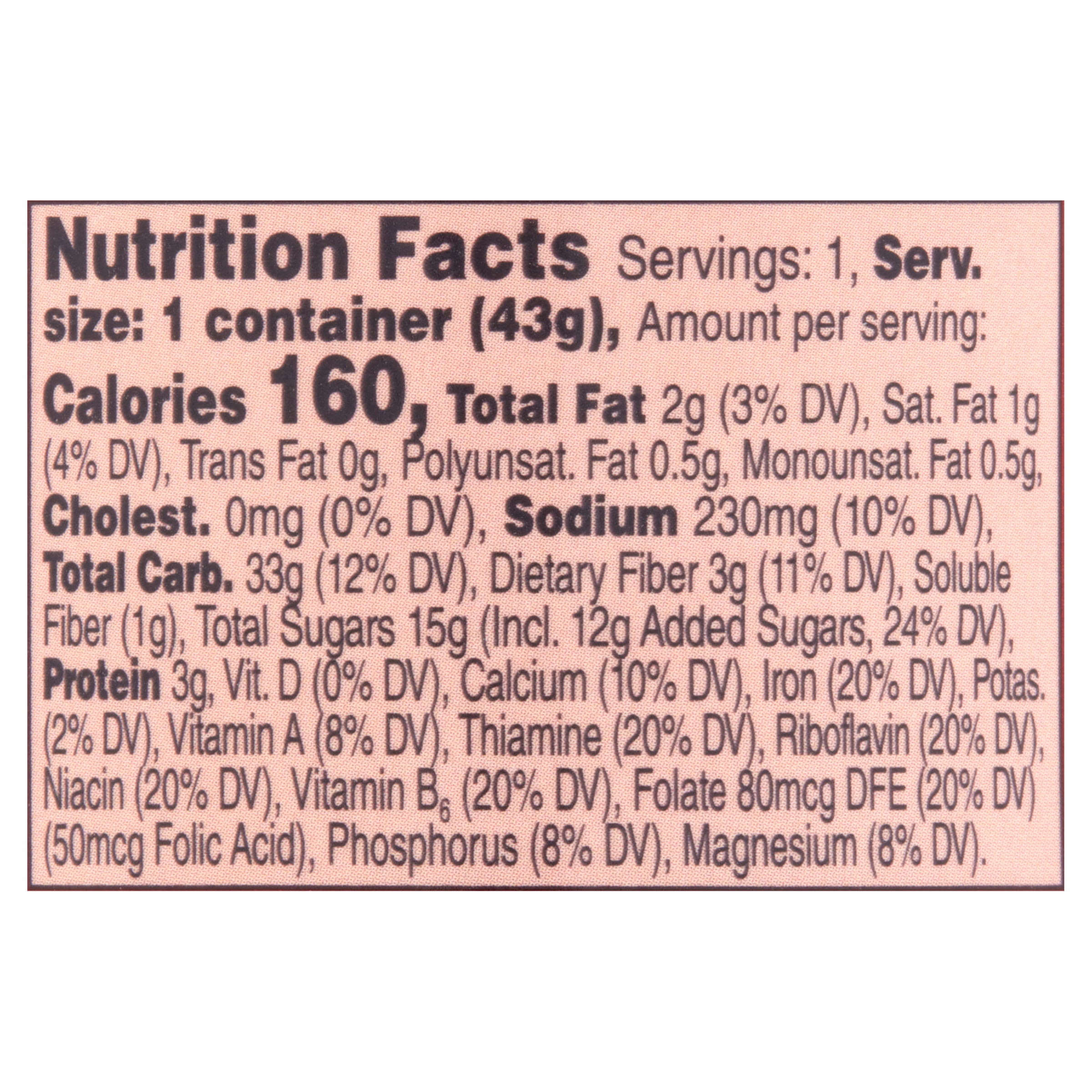 Great Value Strawberries & Cream Instant Oatmeal tastes so creamy and delicious, you will want to make it a part of your everyday breakfast routine. This heart healthy oatmeal is a satisfying morning meal and also a good source of seven vitamins and minerals. The individual serving cups are ideal for busy mornings at home or work, and make for easy cleanup. Toss cups in your briefcase or backpack while traveling to ensure you get a healthy meal when away from home. Our instant oatmeal can easily be prepared in two minutes or less by adding boiling water to the individual serving cup or warming it in the microwave with filtered water. Serve along with bacon and eggs or top with your favorite milk product for an extra hearty breakfast. When you want to have a great morning, reach for Great Value Strawberries & Cream Instant Oatmeal.