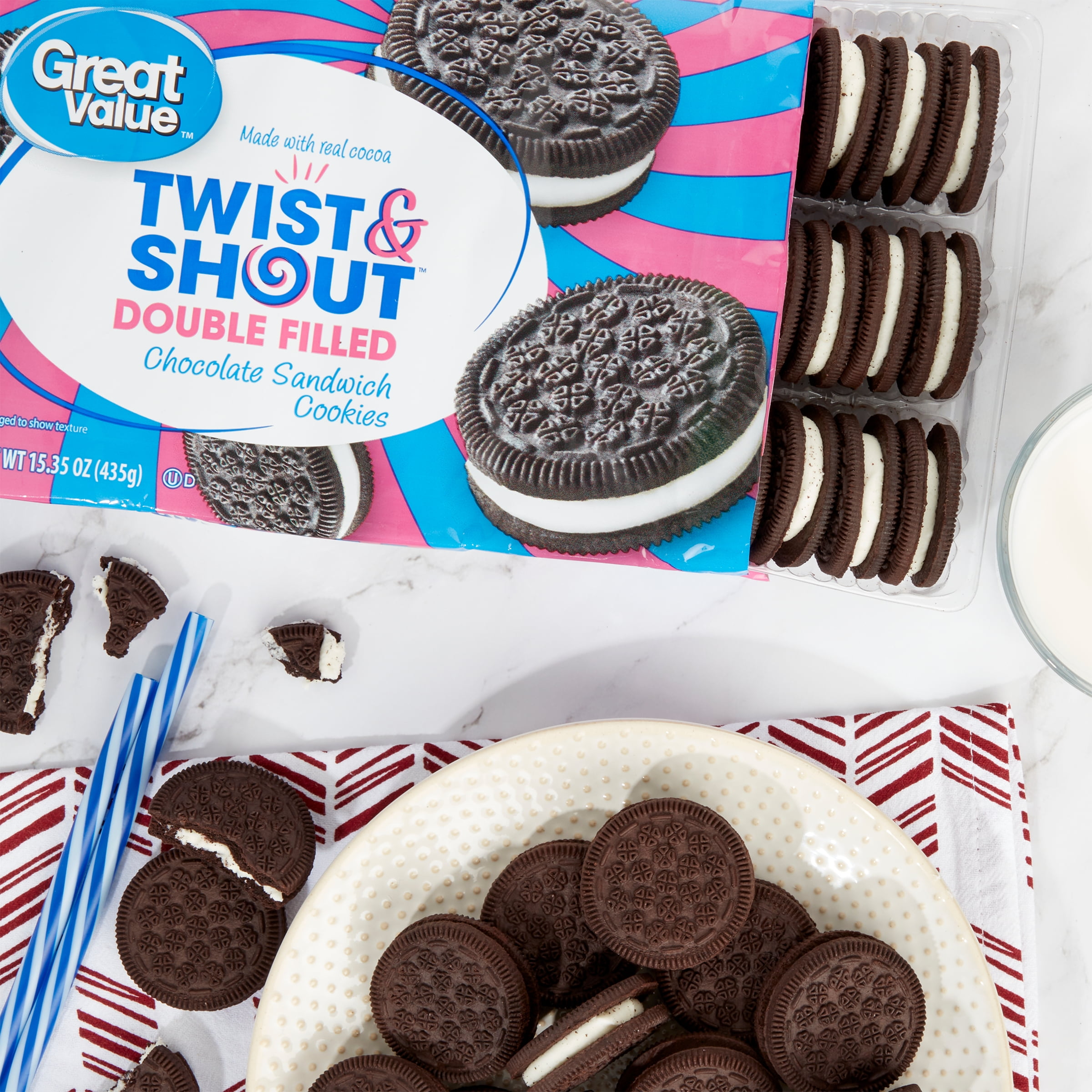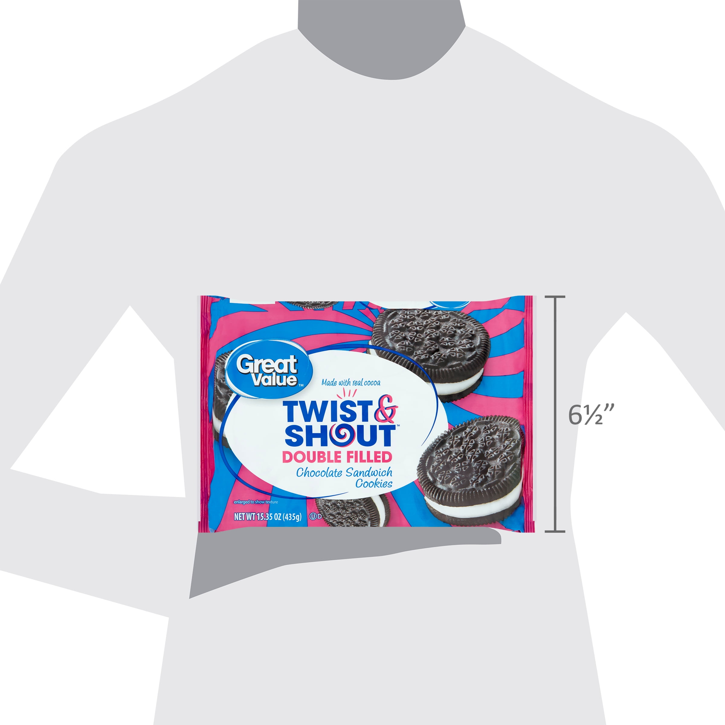 Great Value Twist and Shout Double Filled Chocolate Sandwich Cookies, 15.35 oz