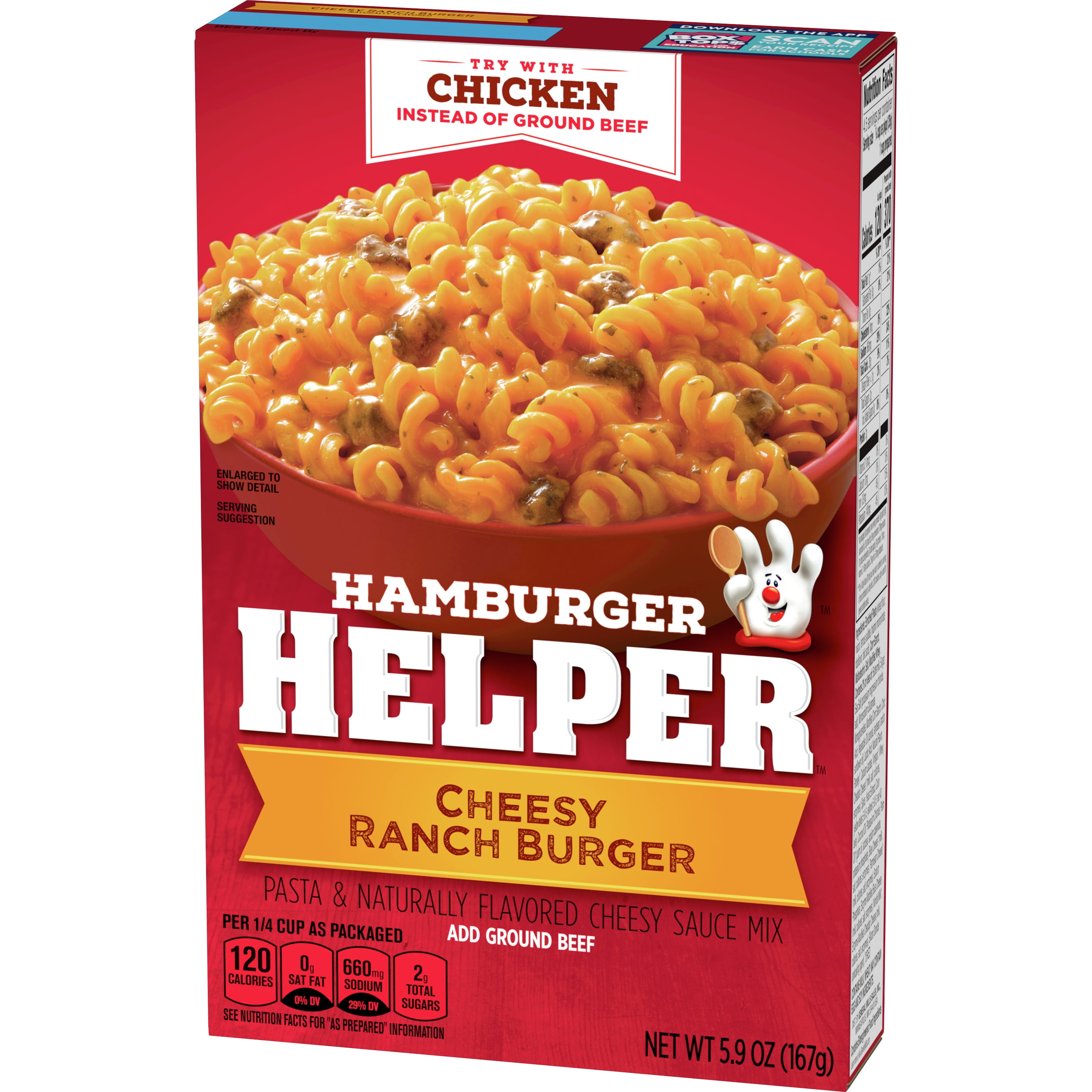 - PASTA: America’s favorite Hamburger Helper in delicious ranch burger entree, blending pasta, savory mashed potatoes and a crispy ranch coating for chicken