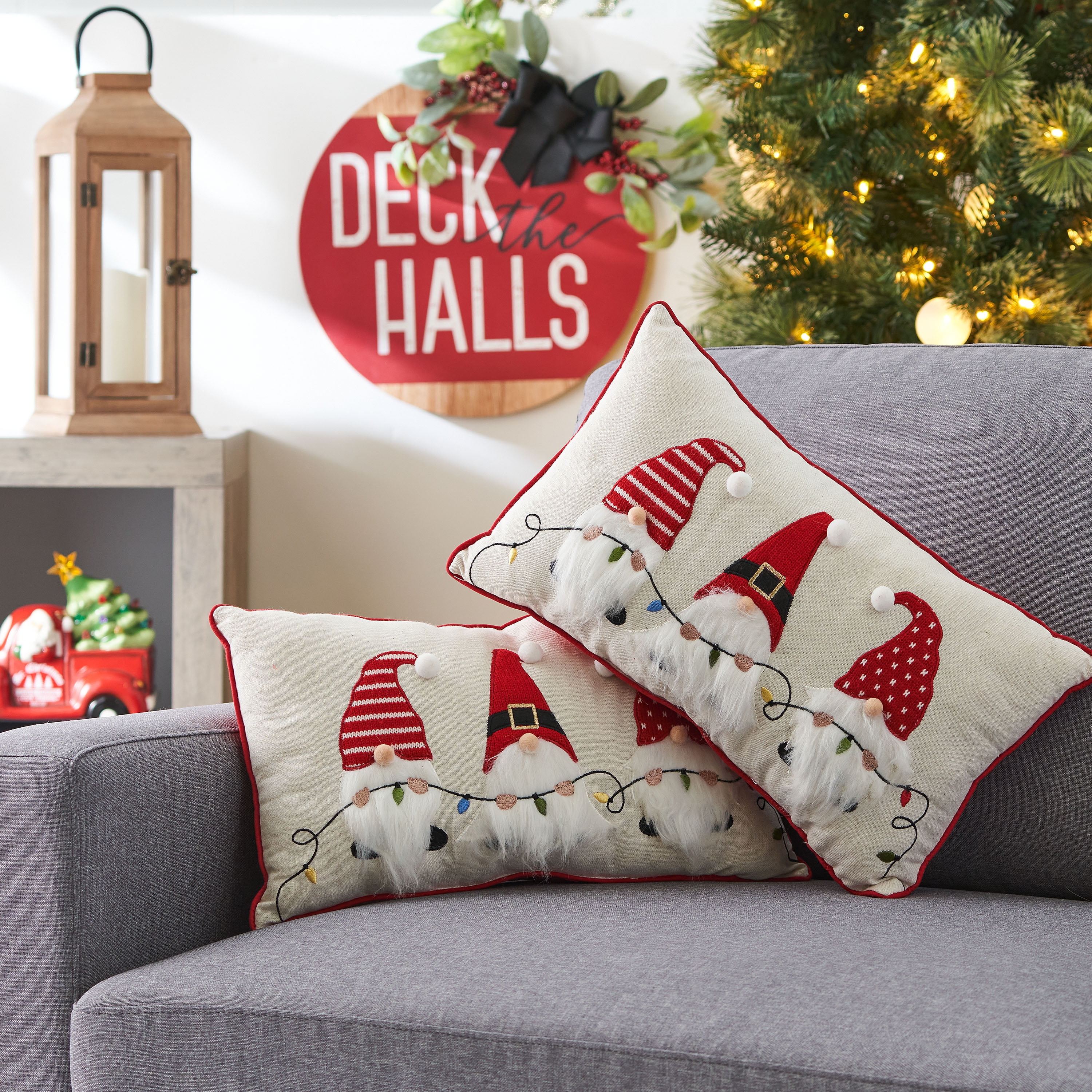 - Holiday Time 2pack Christmas Gnomes Lumbar Decorative Throw Pillows