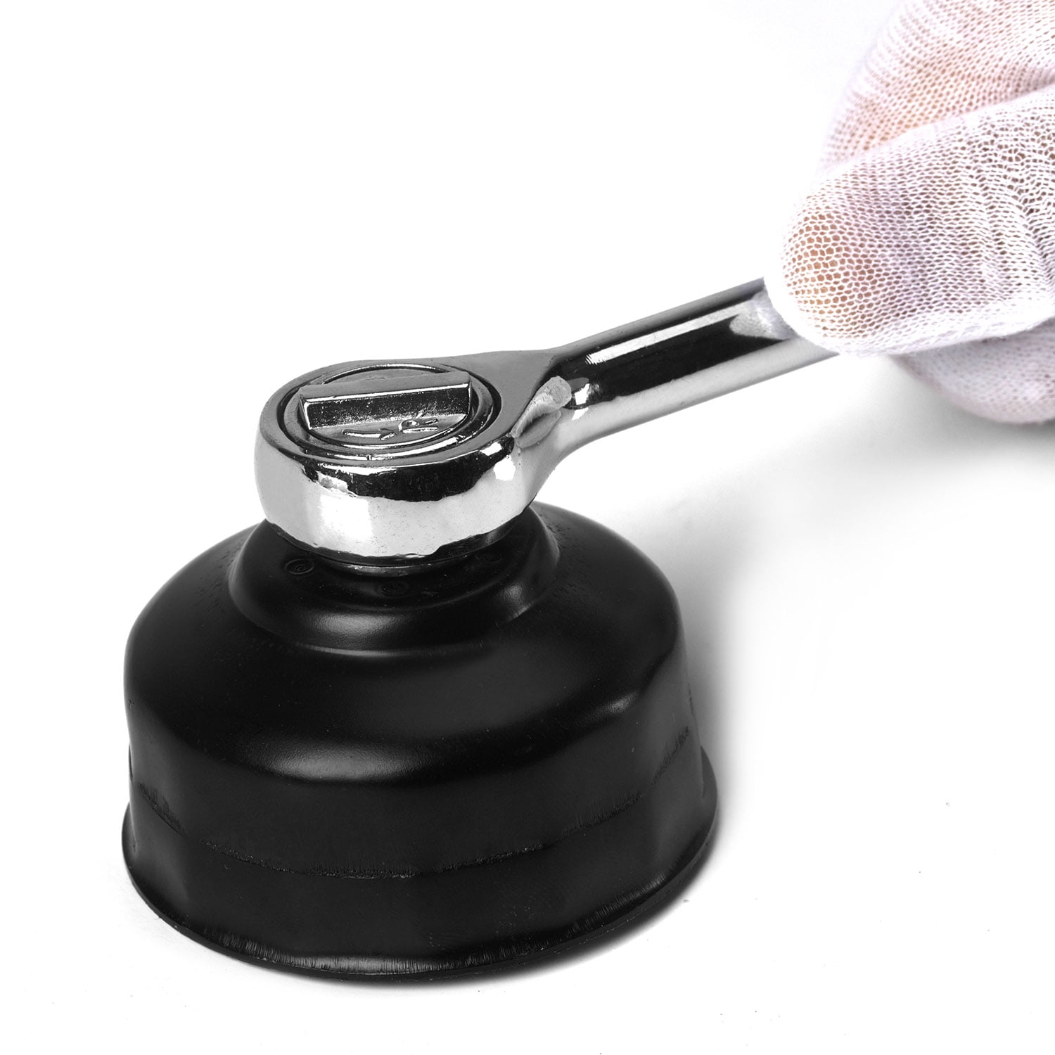 Hyper Tough Oil Filter F Cap Wrench (Model 4213) can grip filter tighter as more torque is applied to it self, it is specially designed wrench to remove hard-to-reach multi-flute oil filters. It is designed to be used with 3/8 in. driver. This precision-stamped cap wrench provides a tight fit with the oil filter helping remove the filter securely without damaging the filter housing. This F Cap Wrench can be used to remove 65-67 mm 14 flute oil filter.