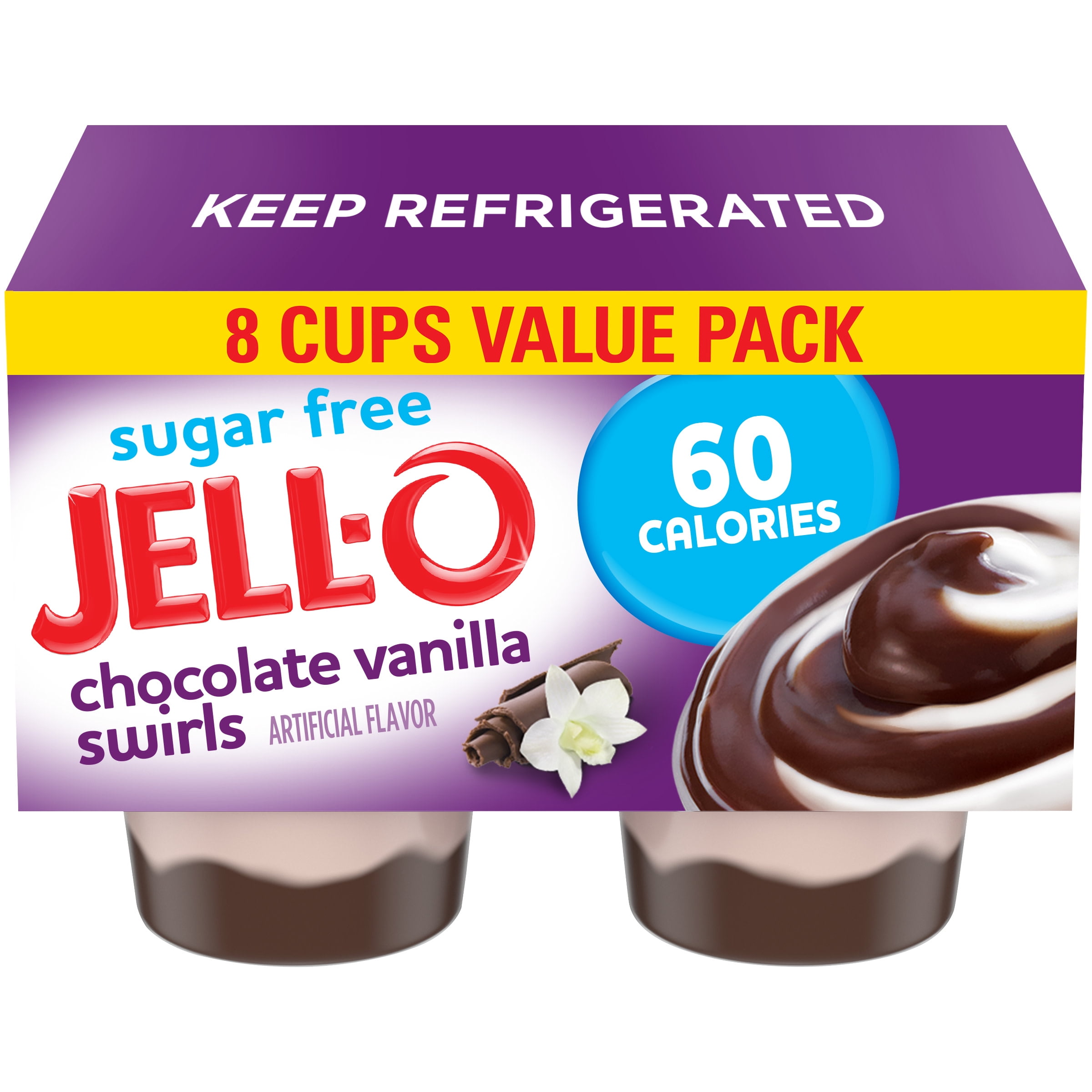 Jell-O Chocolate Vanilla Swirls Sugar Free Pudding Cups Snack Value Pack, 8 ct Cups