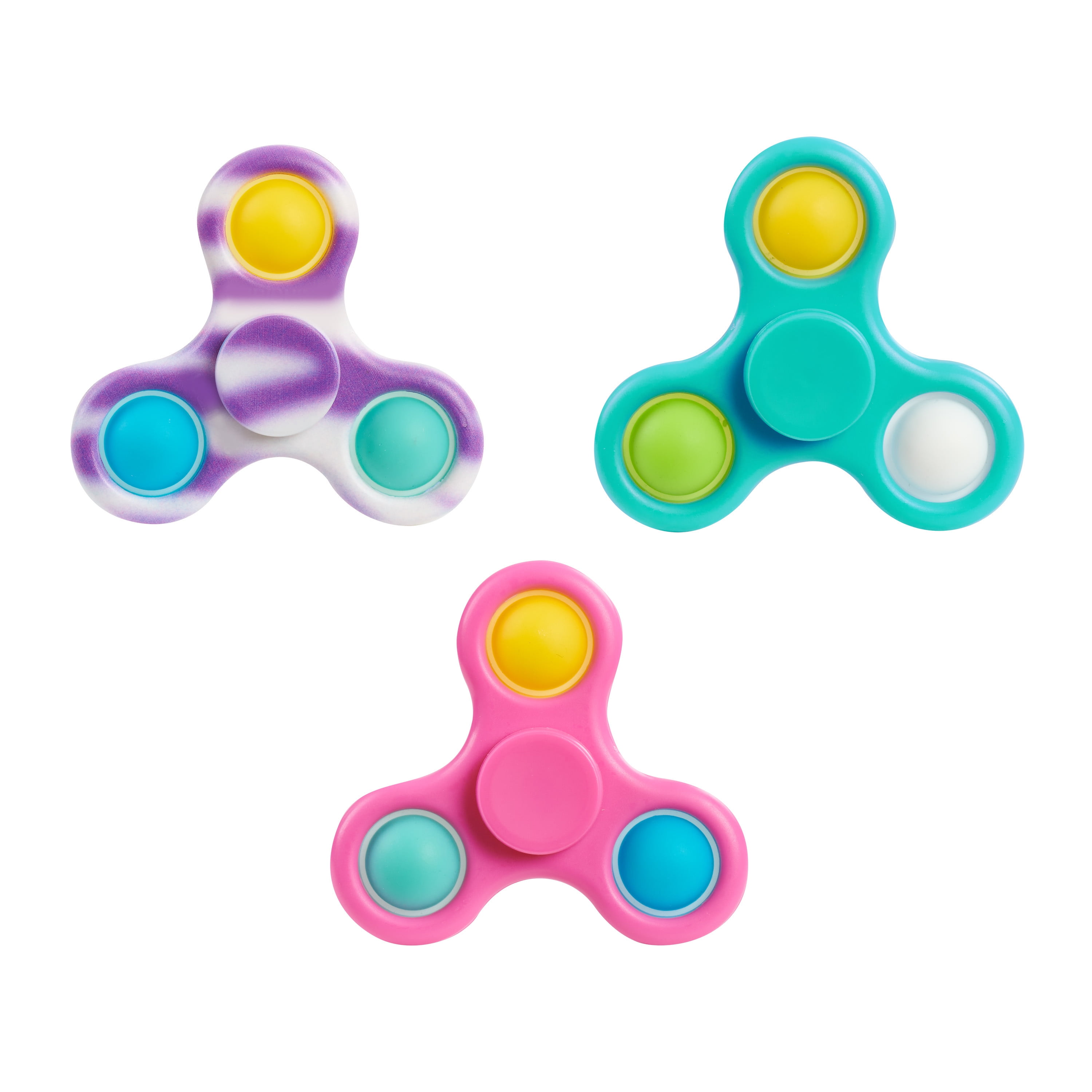 Play, feel, and fidget! Keep restless hands and minds focused with Fidgetz sensory toys. The Pop Spinner combines 2 toys in one! The arms of the spinner contain soft, popping silicone poppers to push. Hold in the middle and spin the arms to experience the pleasant vibration and soothing blur of pink, green, and blue pops. Small enough to pack in bags or pockets, these spinners are known to reduce anxiety. Look for different types of Fidgetz toys to experience the ultimate sensory sensations including Pop, Stretch, Light Up, Snap & Click, Squeeze, Suction, and Flips (each sold separately). Ages 3+