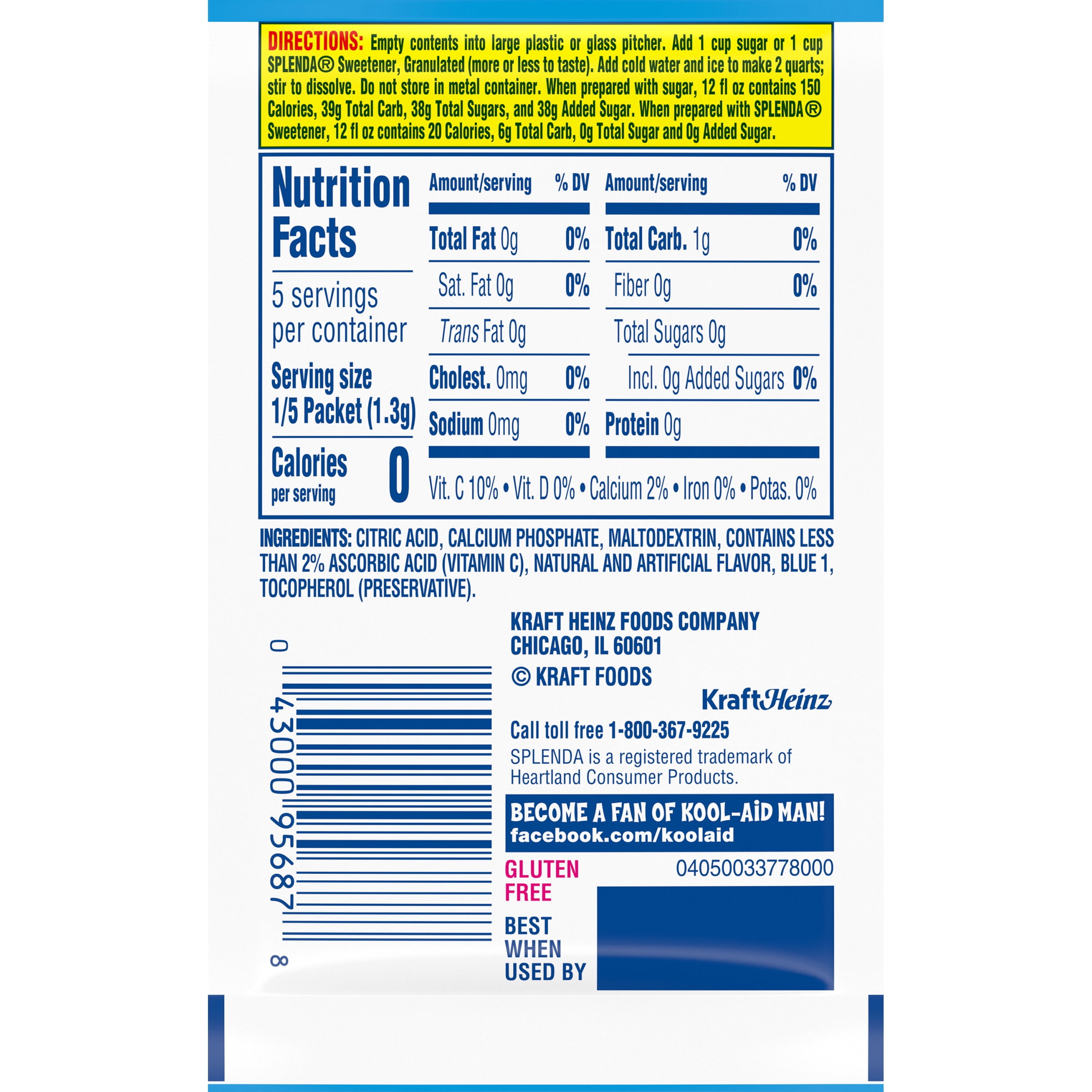 Kool-Aid Artificially Flavored Mixed Berry Unsweetened Powdered Drink Mix is a delicious way to stay hydrated. This unsweetened powdered drink mix makes it easy to prepare a tasty blue mixed berry drink, just mix it with water and sugar or your sweetener of choice. Quench your thirst with the refreshingly sweet taste of mixed berry. With no caffeine, this artificially flavored powdered drink mix is always a great choice for the whole family. It’s also a good source of vitamin C. These handy packets of unsweetened mixed berry drink ensure that you always have a refreshing beverage ready-to-go. To prepare, empty contents of the 0.22 ounce drink mix packet into a plastic or glass pitcher. Add 1 cup of sugar or sweetener. Then, just add ice and water and stir for a 2 quart supply of tasty mixed berry Kool-Aid.