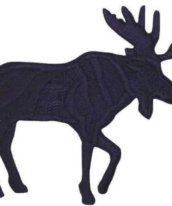 Large – Moose Silhouette – Black – Facing Right – Iron On Embroidered Patch
