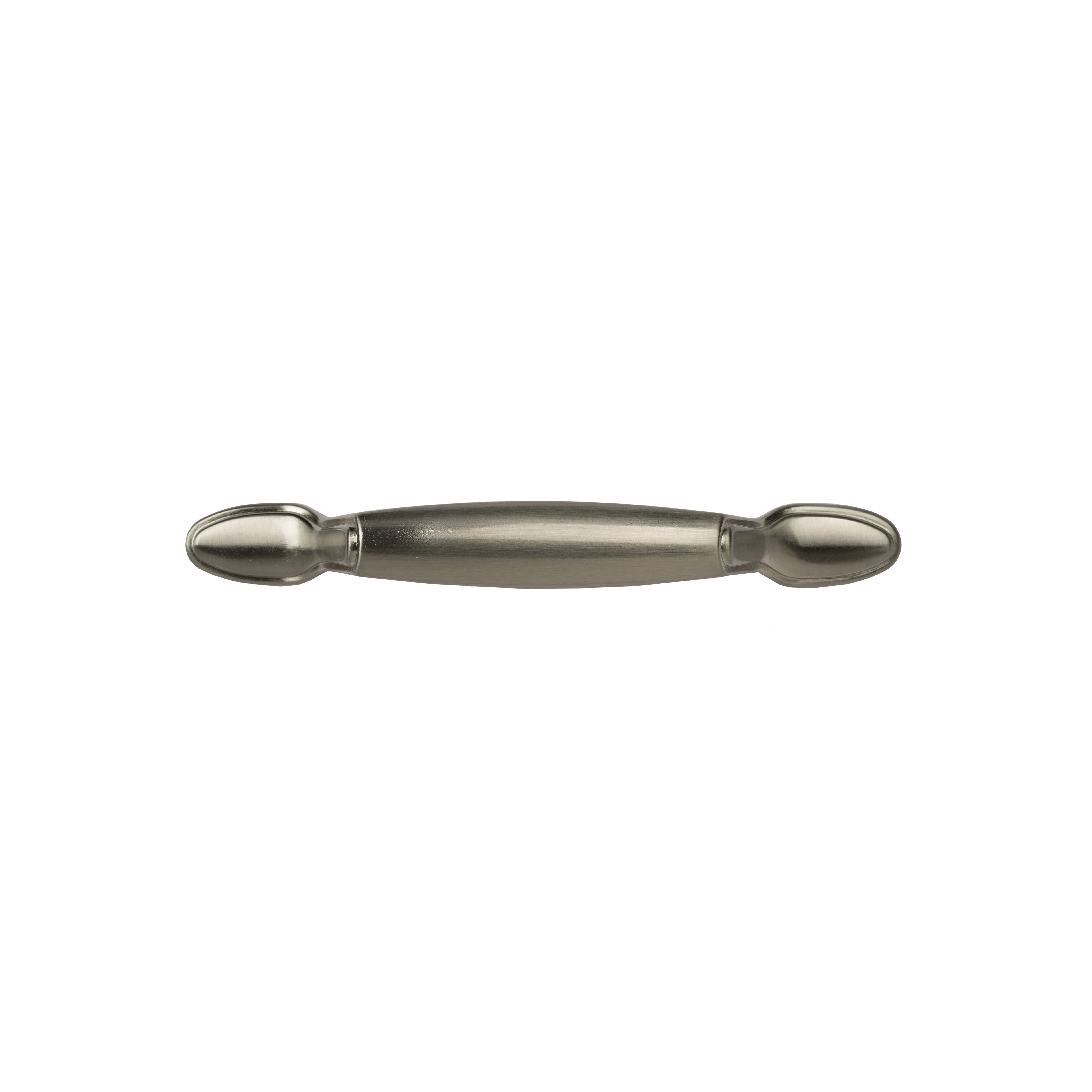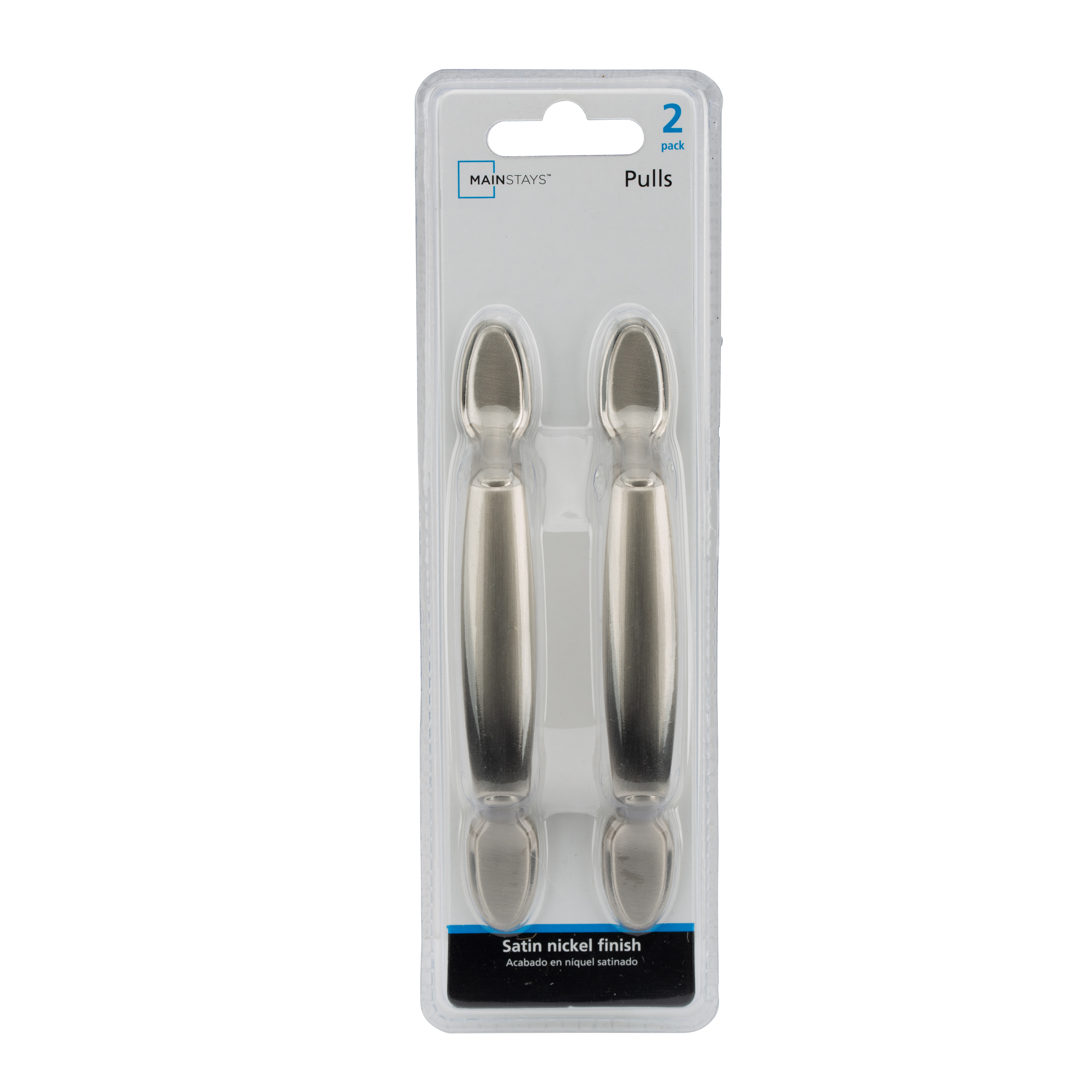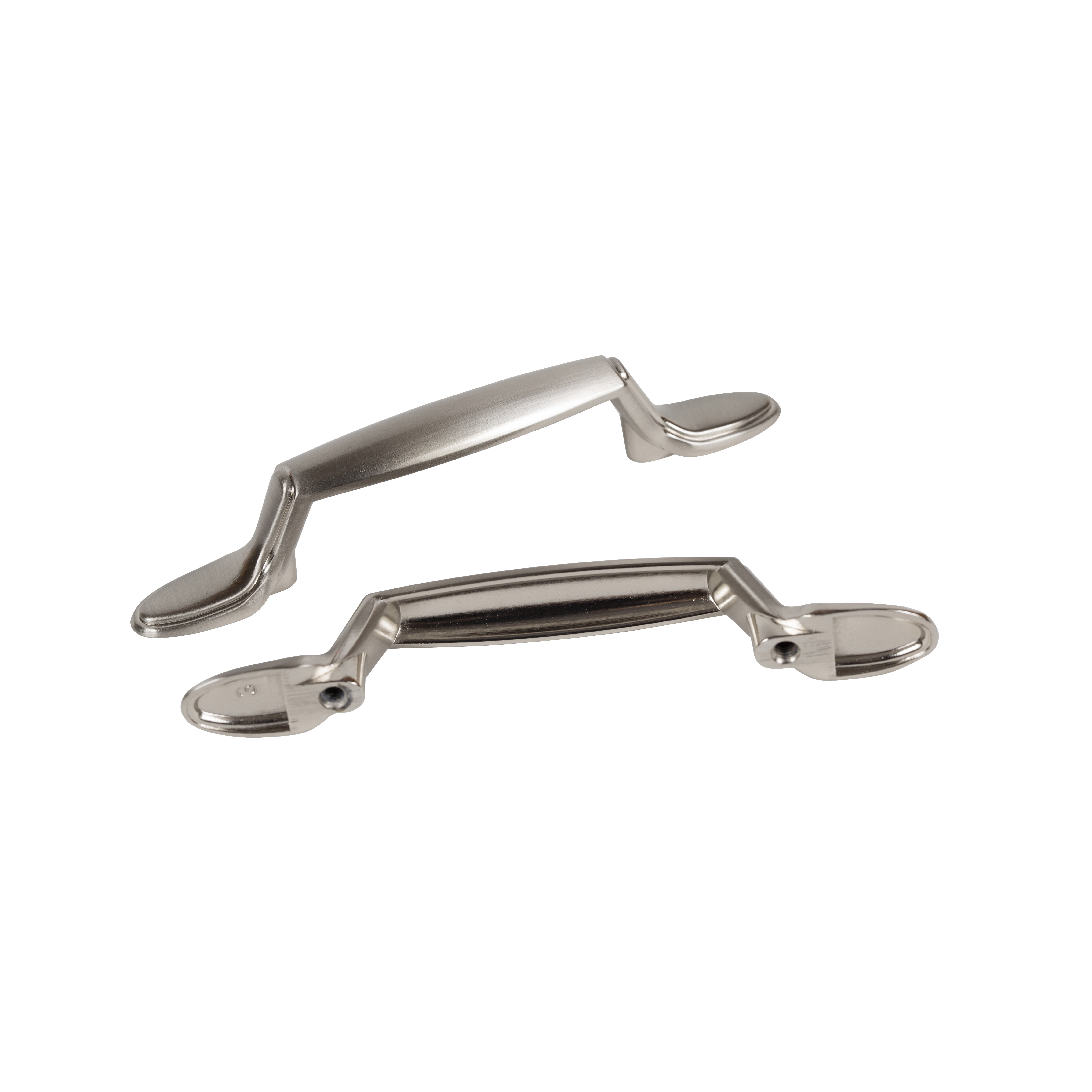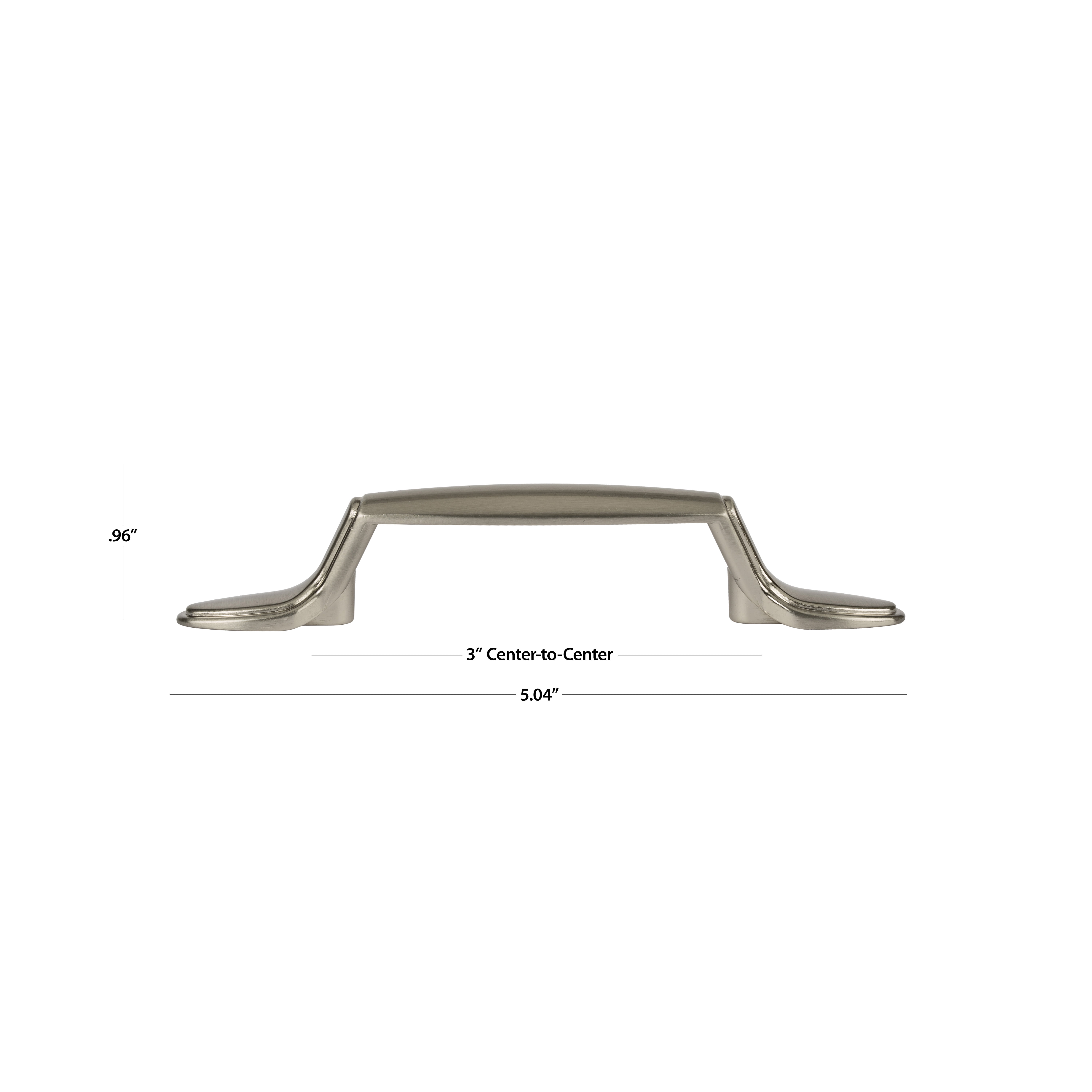 The Mainstays Traditional Footed Cabinet Pull in satin nickel will add sophistication to your kitchen or bathroom doors and drawers. The versatile satin nickel finish has a warm gray undertone with lightly brushed surface, sure to compliment a wide range of decorative styles. The traditional, sleek design compliments modern-day casual furnishings and displays a look of refinement. Easily transform your space or freshen up a piece of furniture by simply updating your cabinet hardware. The pull has a center-to-center measurement of 3 inch (76 mm) between screws, which is most common, but measure the existing holes on your cabinet to confirm the dimension you need. The package includes (2) cabinet pulls and (4) 8-32 x 1 inch mounting screws for a quick, stress free installation.