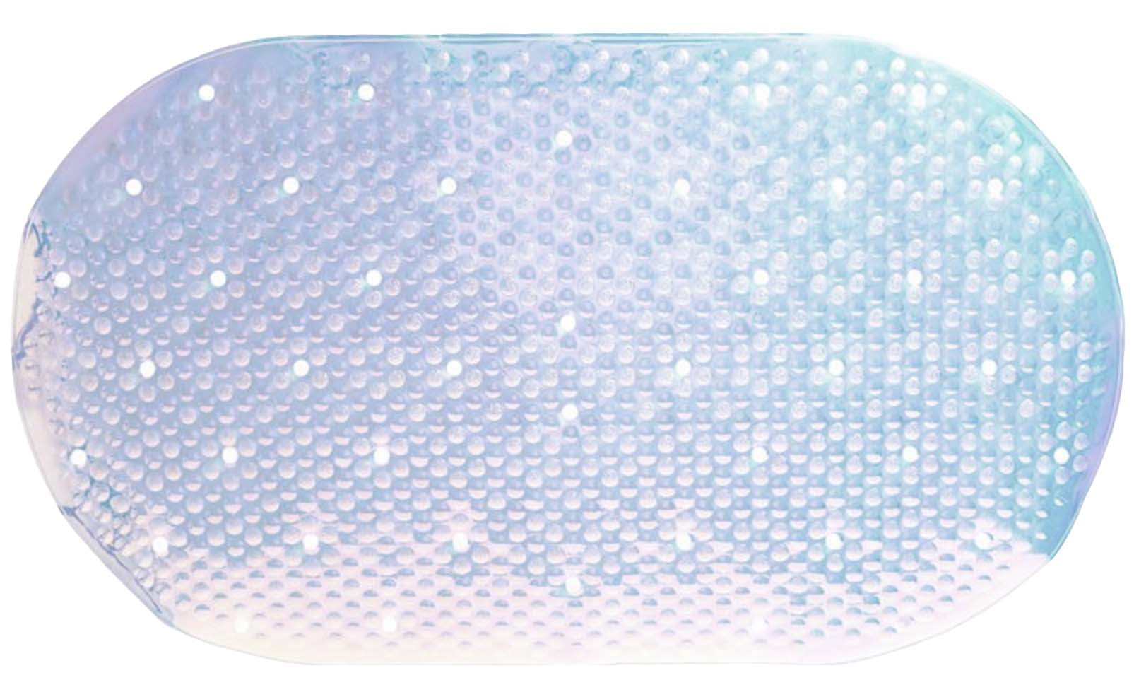 Mainstays Holographic Tub Mat is a fun shiny colorful mat with cushioned bubbles for a comfy feel. This tub mat has skid-resistant suction cups, holes for water drainage, & mildew-resistant latex-free. Measures approximately 15” x 27". Add safety and style to your bathtub with this convenient non-slip bath mat, adding a slip-resistant grip to the floors of your bath or shower.