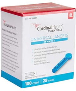 McKesson Lancet Twist Top Needle 1.8 mm Depth 28 Gauge Push Button Activated, 16-028-100 – BOX OF 100. Brand: McKesson. Manufacturer Name: McKesson Brand. Manufacturer Number: 16-028-100. Application: Lancet. Color: Blue. Latex Free Indicator: Not Made with Natural Rubber Latex. Sterility: Sterile. Type: Twist Top Lancet. Usage: Disposable. Target Area: Fingertip. SOLD BY: BOX OF 100. Color: Blue28 Gauge NeedleTwist TopSterileTri-Bevel TipSingle use onlyUniversal design fits most lancing devicesConsistent depth penetrationSterile, tri-beveled needle for added protectionTwist-activated safety device helps prevent needlestick injuriesMcKesson Lancet Twist Top Needle 1.8 mm Depth 28 Gauge Push Button Activated, 16-028-100 – BOX OF 100