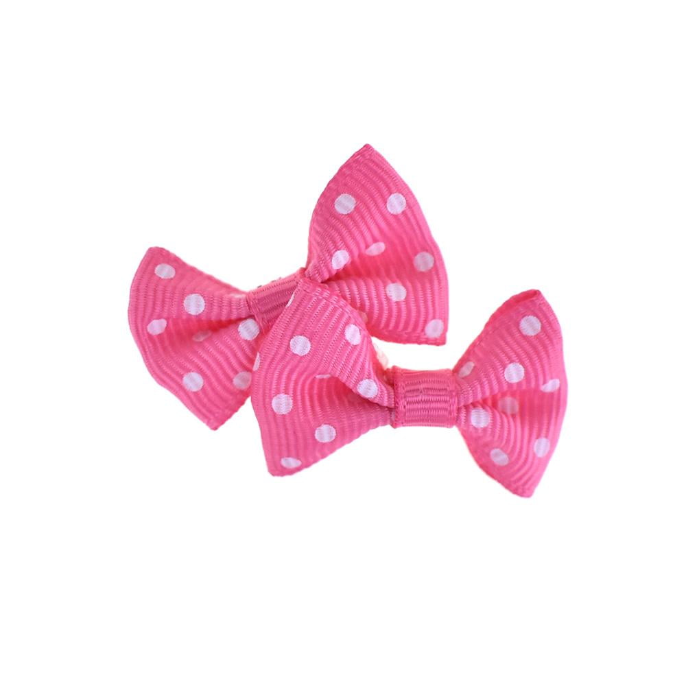 Mini Polka Dot Tied Grosgrain Bow Favor Embellishments, 1-1/2-Inch, 12-Piece, Fuchsia