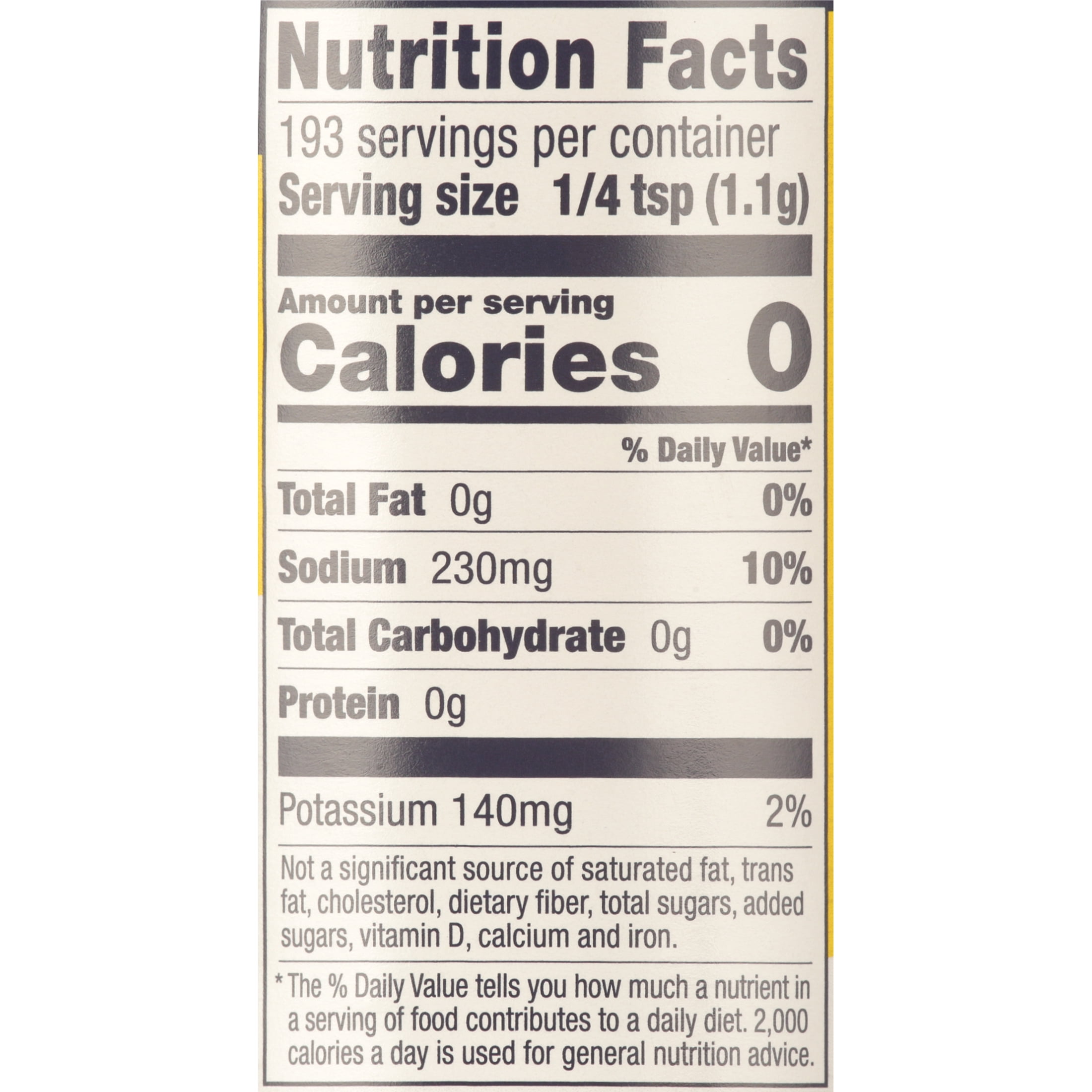 Morton Nature Seasons 25% Less Sodium 7.5oz25% less sodium with a seasoning blend of mixed garlic, onion, salt, pepper, and other natural spices. It is 100% MSG-Free.