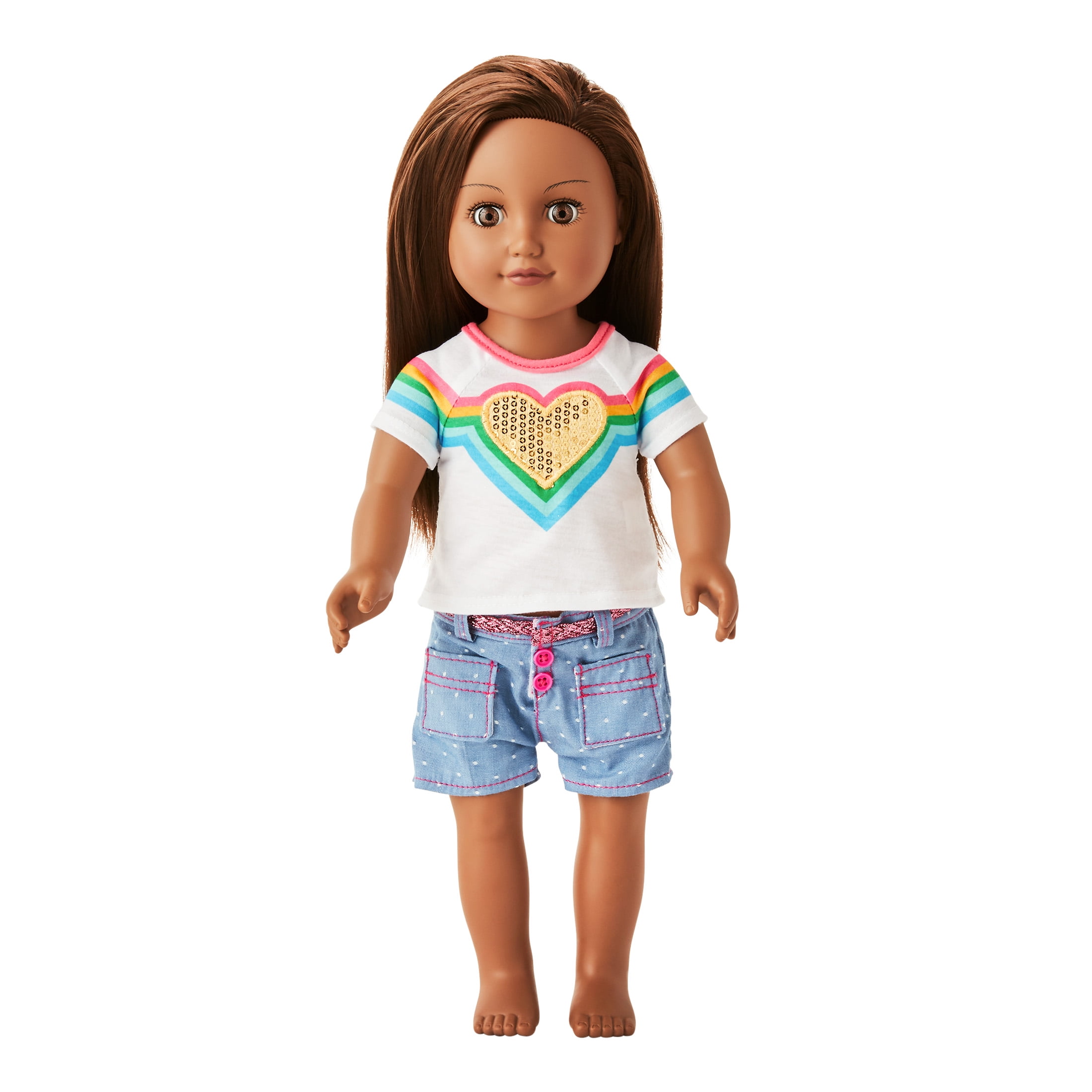 - My Life As Rainbow Heart Sequined Tee-Shirt & Shorts Outfit for 18” Doll