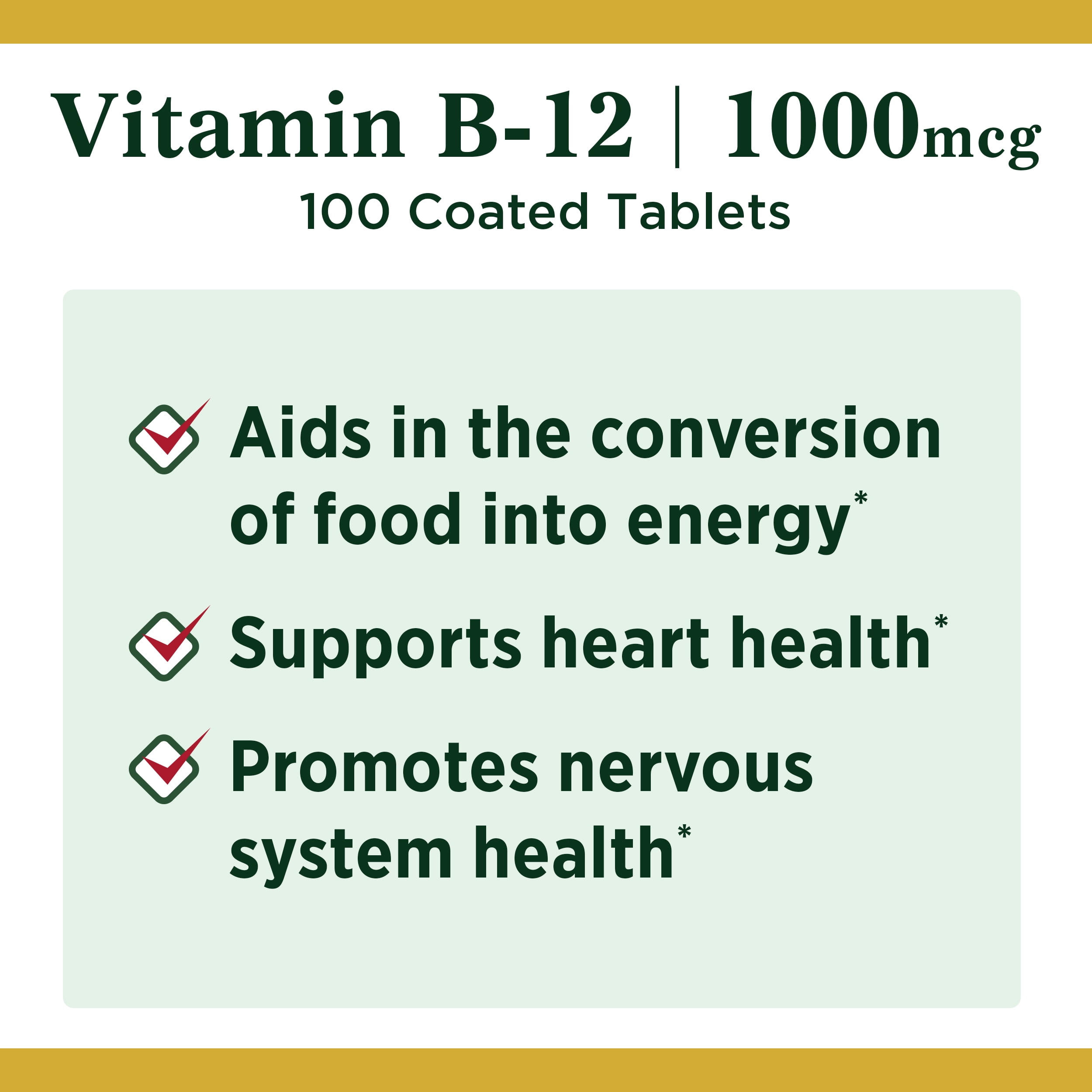 - Nature’s Bounty Vitamin B12 Coated Tablets, 1000 mcg, 100 Ct: