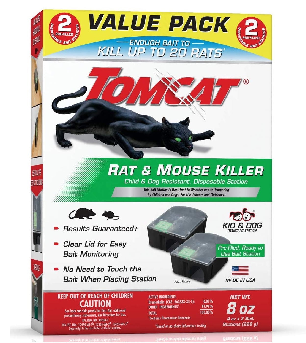 The bait station is also weather-resistant, making it the ideal station for indoor & outdoor use. Bait stations are easy to use, allowing placement in small places like entry & garage doors, below windows, near utilities & any other areas where mice tend Highlights: Size : 8 Ounce Kills up to 10 rats Disposable station is resistant to tampering by kids & pets Can be used indoors & outdoors Effectively kills rats & mice while providing the highest level of station security Weather and tamper-proof from any child or dog in your home; usable indoors and outdoors Tomcat rat & Mouse Killer disposable value pack of 2 pre-filled, ready to use bait stations effectively kills rats and mice while protecting kids and dogs Bait stations are easy to use, allowing placement in Small places like entry and garage doors, below windows, near utilities and any other areas where rodents tend to hide Number in package : 2New 1PK Tomcat 4388404 Disposable Rat & Mouse Bait Station Value Pack, 4 Oz, Each