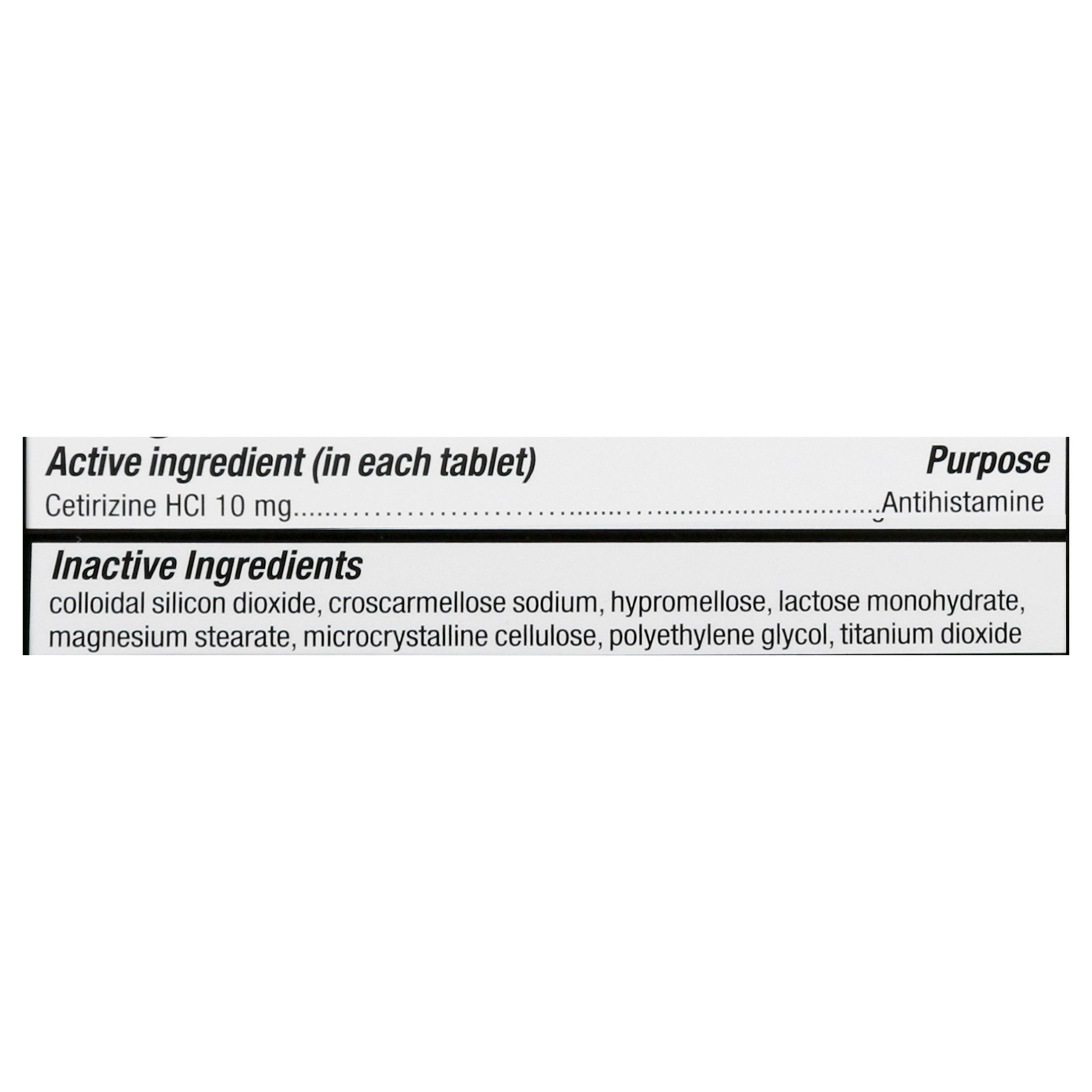 - Each allergy pill contains 10 mg of cetirizine hydrochloride efficiently suppresses indoor & outdoor allergies.