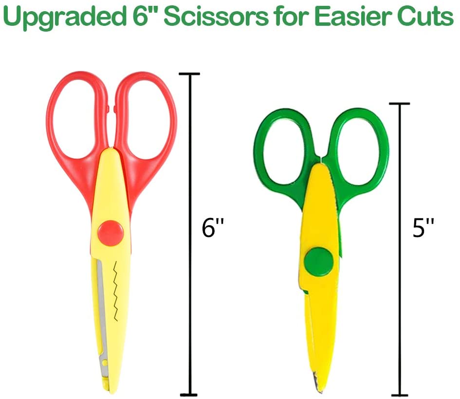 - 4 PIECE SCISSOR SET: Comes with 4 pieces of paper edge scissors that measure 6”, it’s great DIY tool kit for school, homework or interactive crafts of parents and kids. This art scissor set allows for endless possibilities to decorate your albums, memory books, scrapbook, kids’ paper crafts, greeting cards, and more.