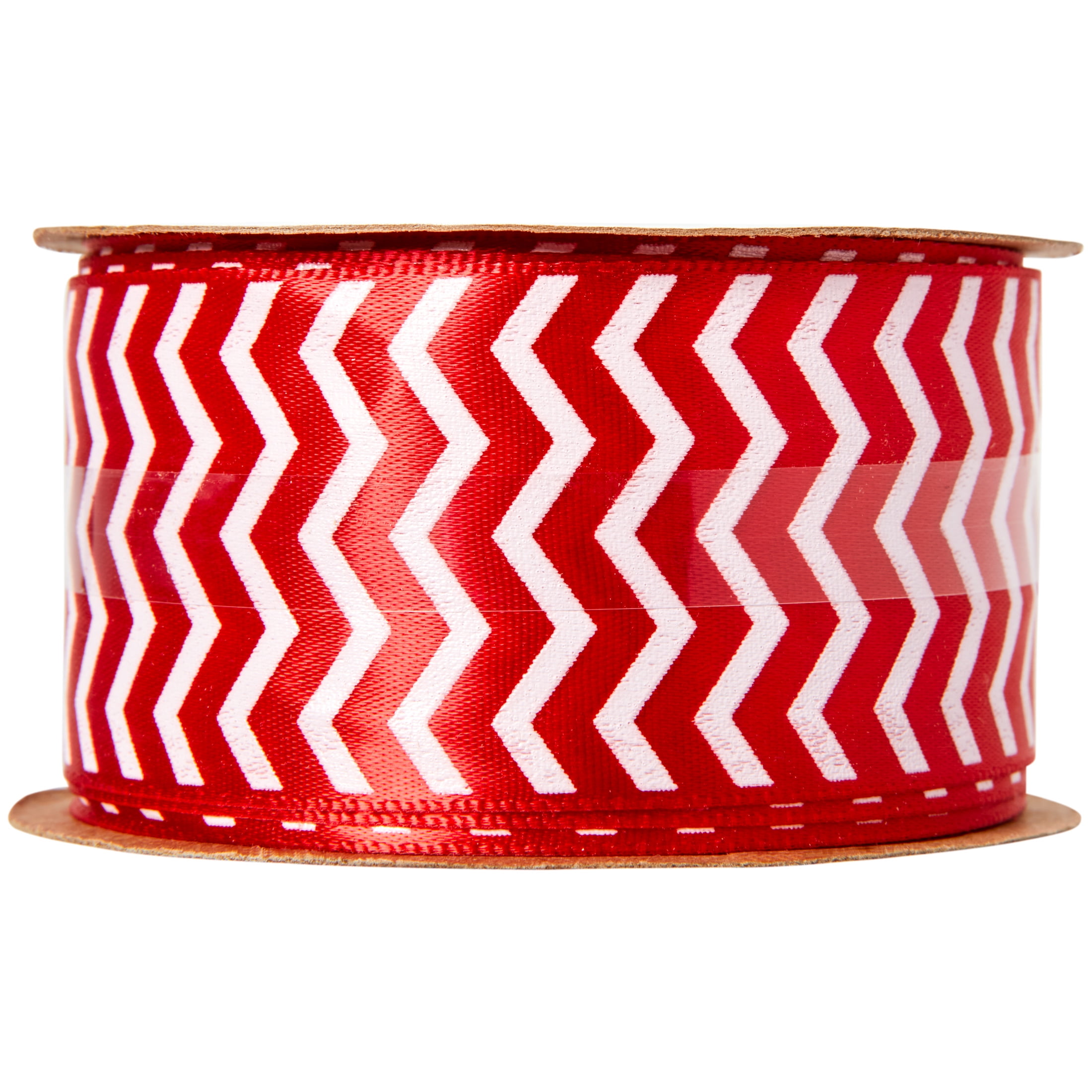 Offray Ribbon, Chevron Red 1 1/2 inch Single Face Satin Polyester Ribbon for Sewing, Crafts, and Gifting, 9 feet, 1 Each