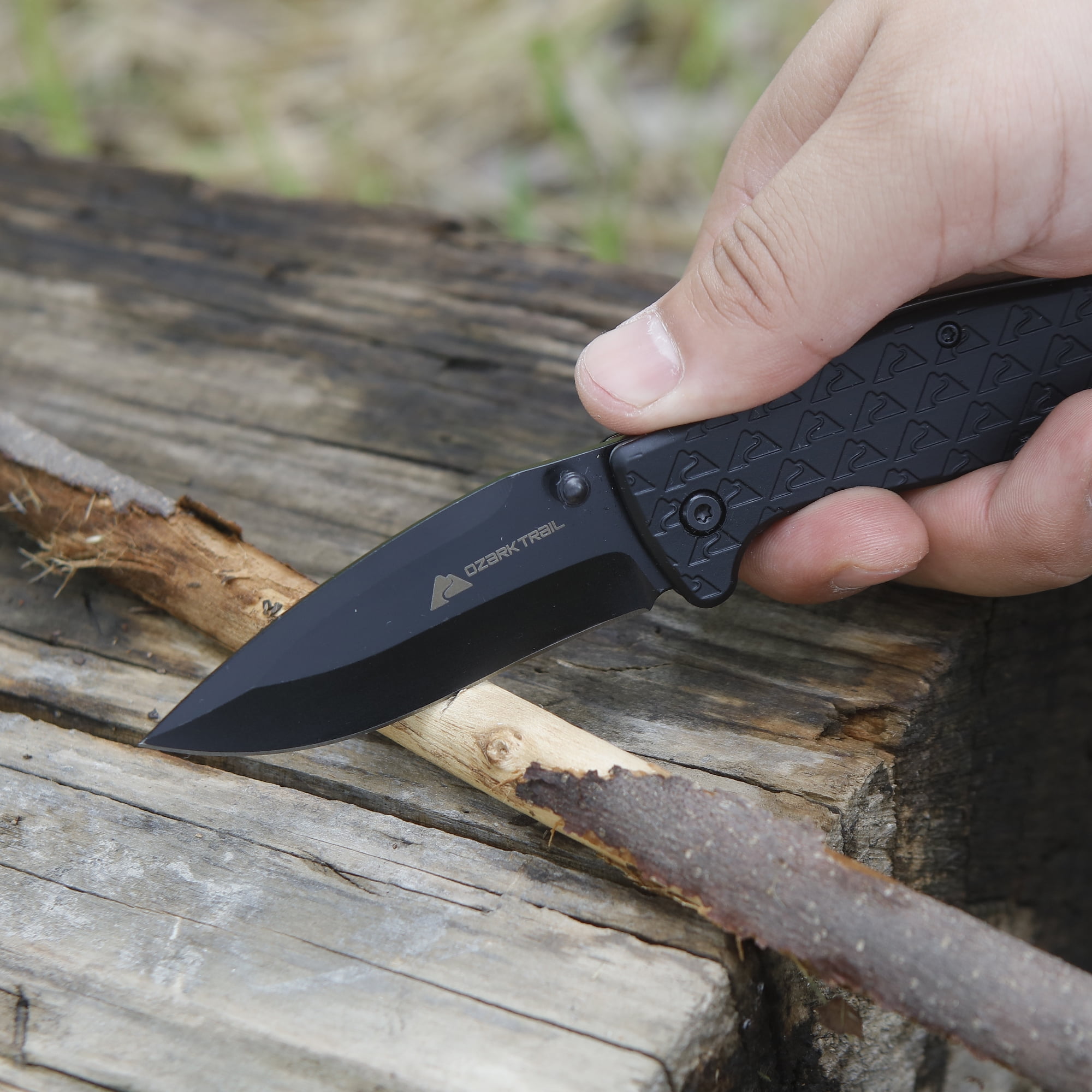 Ozark Trail Aluminum Logo Textured Folding Knife, 3' Blade, Black