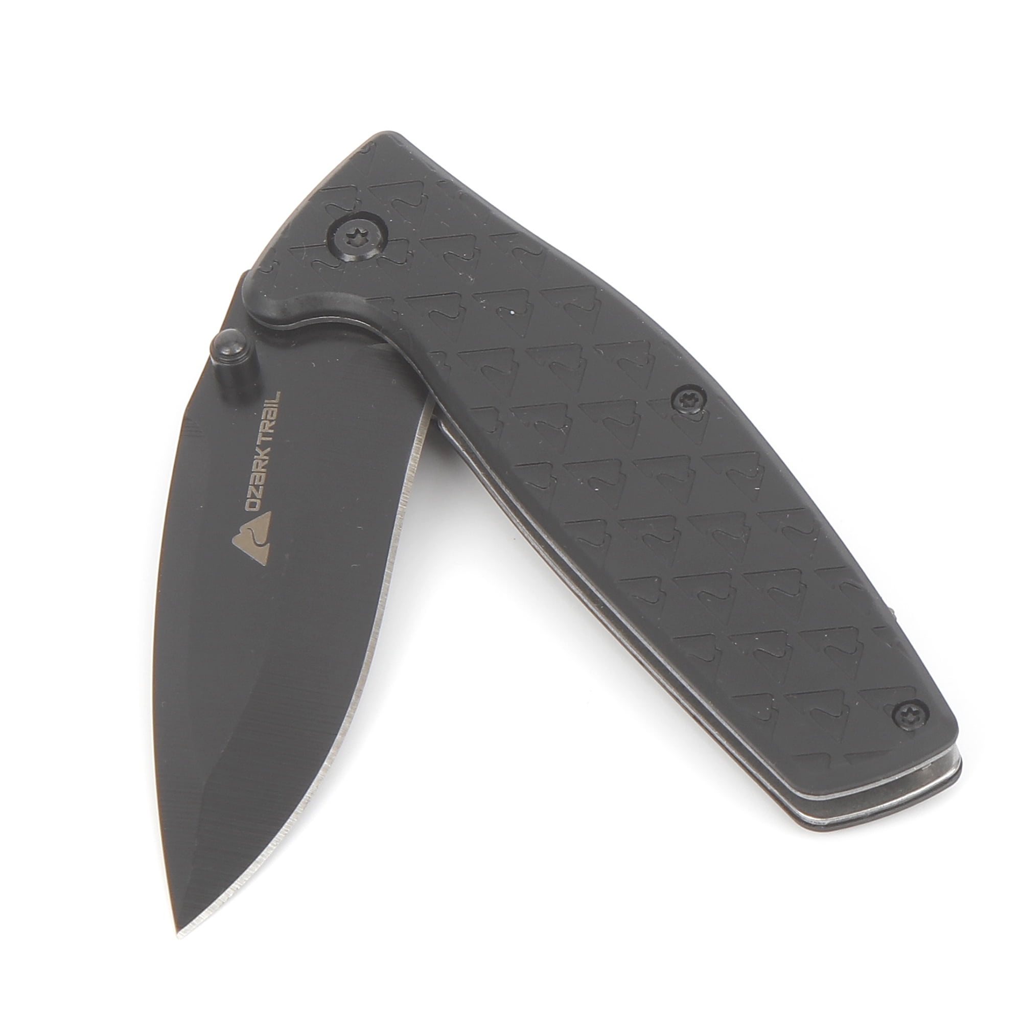 Ozark Trail Aluminum Logo Textured Folding Knife, 3′ Blade, Black