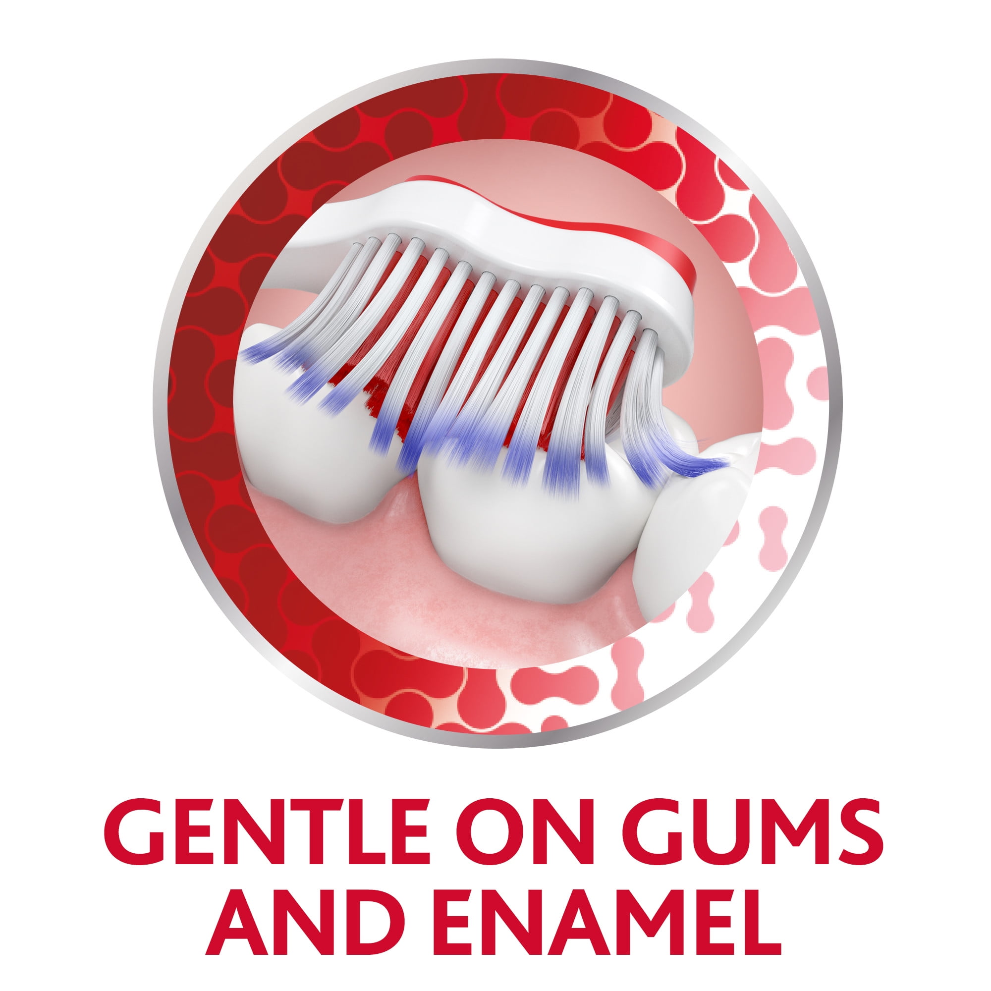 Each Parodontax Complete Protection Soft Toothbrush offers eight specially designed benefits for healthy gums and strong teeth. This soft bristle toothbrush helps restore the natural color of your teeth and also has a tongue cleaner. With an ergonomic handle, this compact head toothbrush helps you reach hard-to-clean areas, providing an oral care solution that is easy to hold and gentle on gums and tooth enamel. This convenient Parodontax toothbrush pack comes with two soft toothbrushes for adults that allows you to replace one after three months of use. Brush your teeth with this manual toothbrush for two minutes twice daily for healthy gums and strong teeth.
