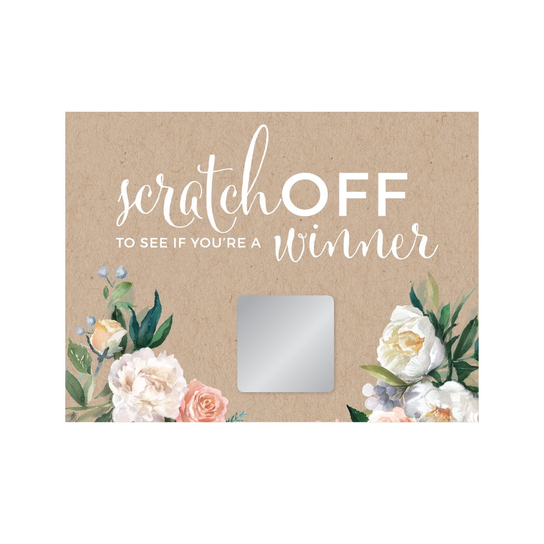 Peach Coral Kraft Brown Rustic Floral Garden Party Wedding, Bridal Shower Game Scratch Cards, 20-Pack