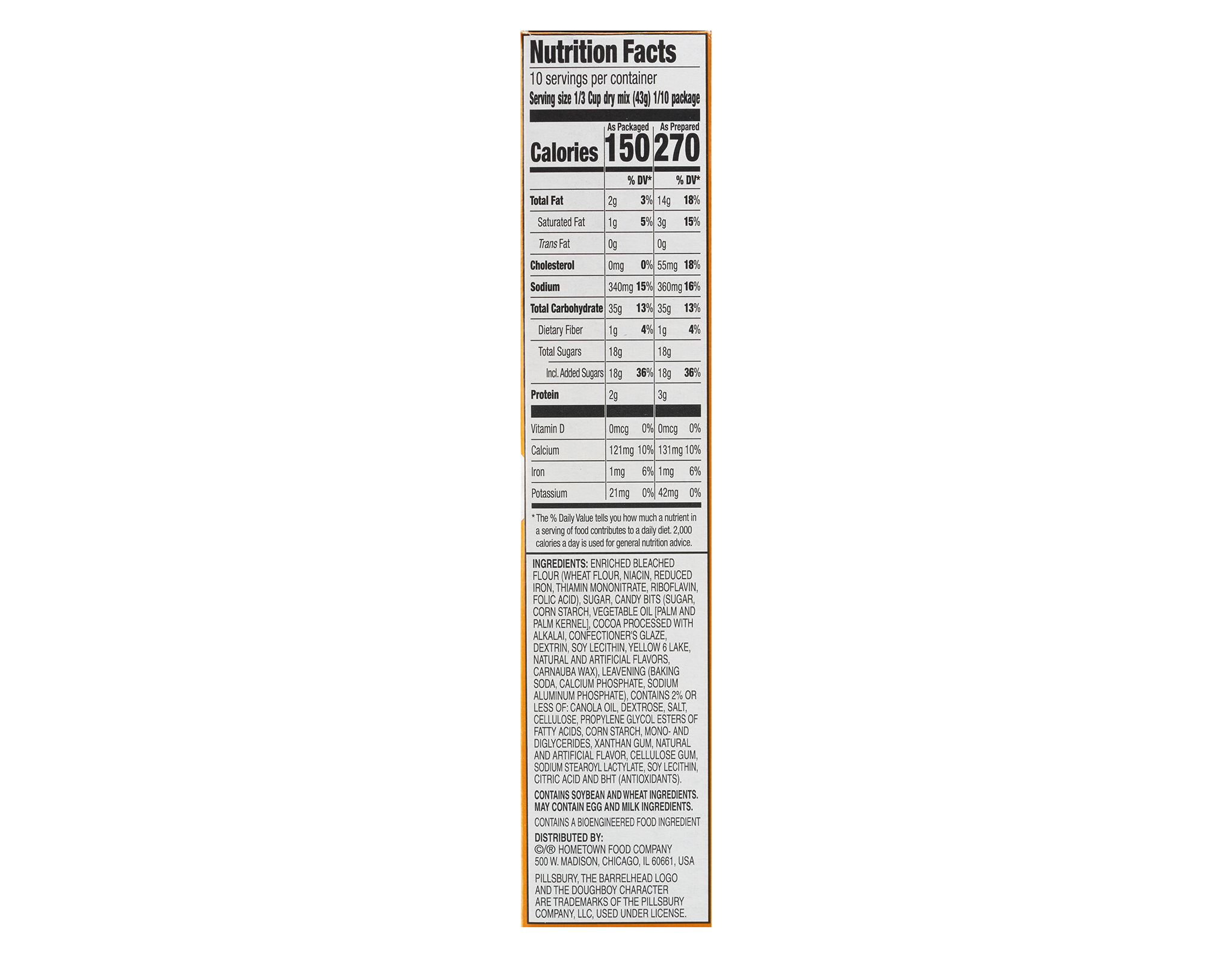 Pillsbury Funfetti Halloween Cake Mix with Candy bits adds a festive pop of color and deliciousness to brighten up your celebration! Fun and easy baking begins with our large variety of moist and delicious cake mixes. While this cake is easy to make, it’s incredibly difficult to put down! One box of cake mix makes 24 cupcakes or one 9” by 13” cake, with colorful sprinkles appearing as you take a bite. Use it to create goodies for your next birthday party, special event or bake sale. Funfetti Halloween Cake Mix pairs great with Pillsbury Funfetti Halloween Frosting. The directions on the back of the box are simple and easy to follow, allowing anyone to partake in the fun!