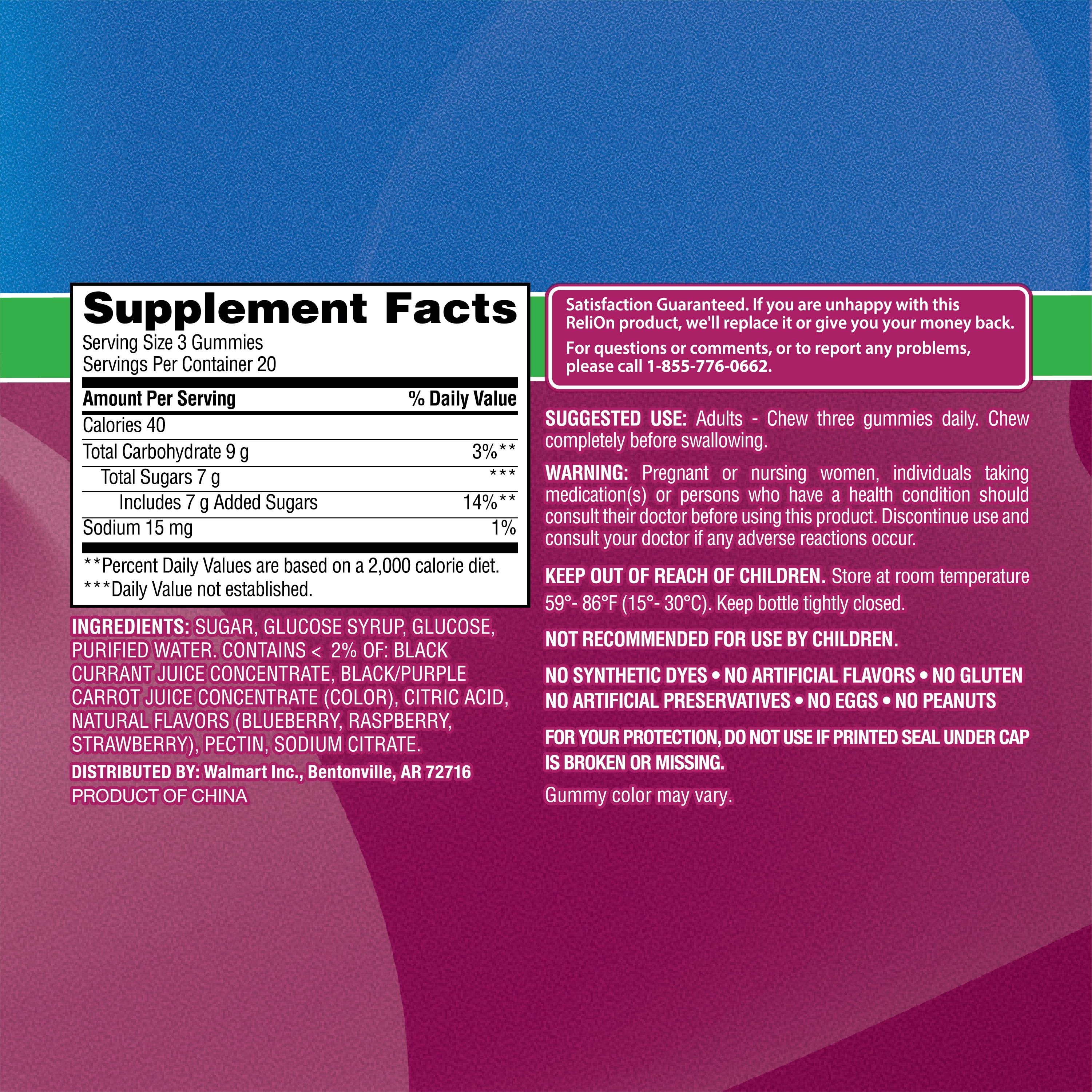 ReliOn Glucose Gummies, Raspberry, Strawberry & Blueberry, 60 Count: