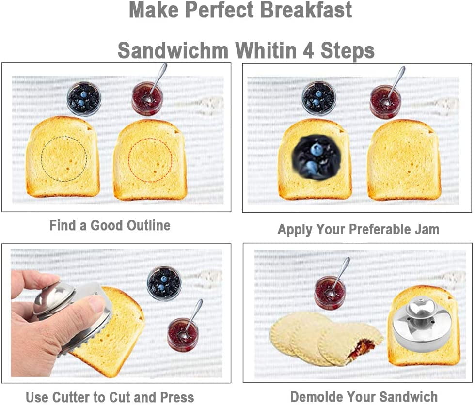 You just need to put the jam or sauce between two layers of bread, then press the mold to finish cutting and sealing.