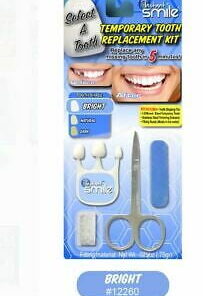 Improve your smile with a realistic solution! 4 enhanced shades of teeth for the perfect match!No need to shape beads into a fake tooth. Our patented kit includes customizable teeth for a realistic look and feel.Safe for oral use and tested to costmetic standards. Trusted for over 10 years, Instant Smile has helped millions smile with confidence again!If needed, each tooth can be shaped and trimmed for the perfect fit. Trimming and shaping tools included.Replace a missing upper or lower tooth. This is nSelect A Tooth Temporary Tooth Replacement Kit- Bright Shade