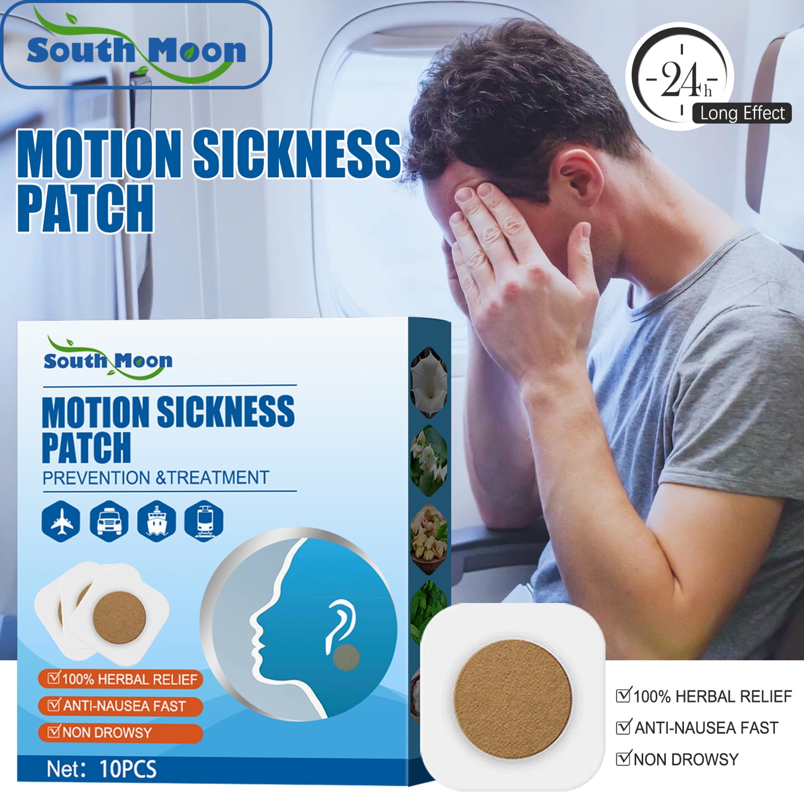 - Apply 10 minutes before the travel, nausea patch lasts about 1-3 days. The patch can be used behind the ear and on the navel at the same time if motion sickness is serious.