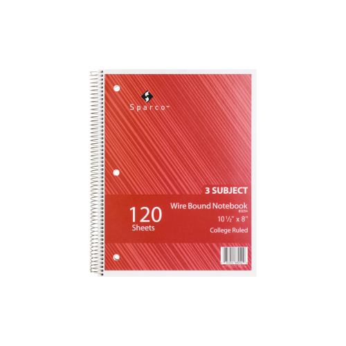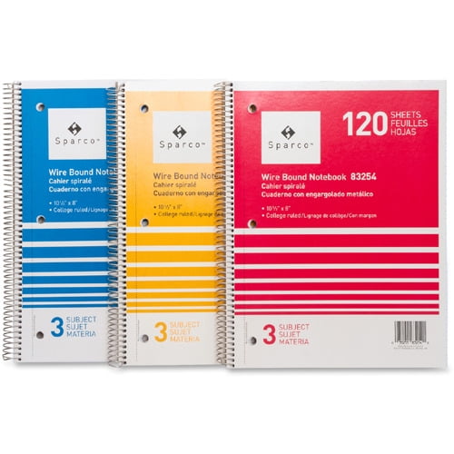 Sparco 3-Subject Quality Wirebound Notebook, Assorted Colors: