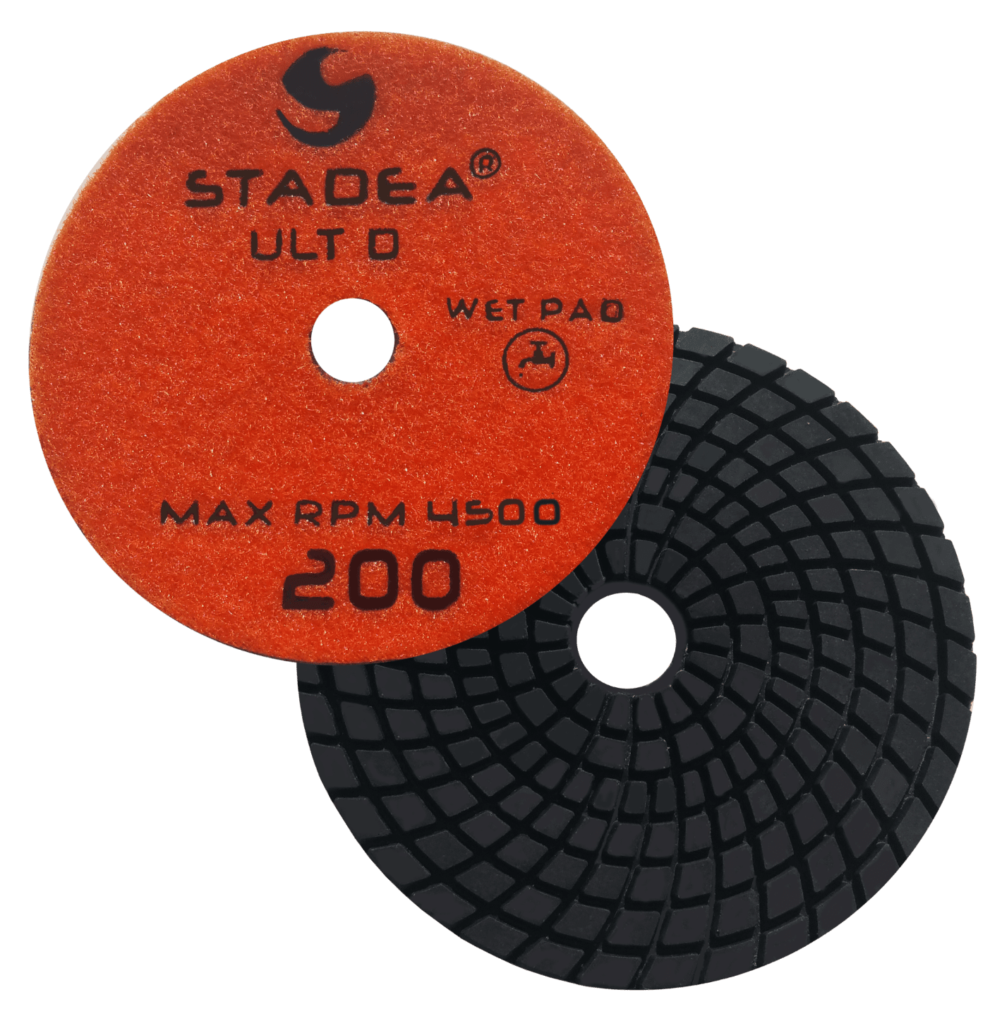 Stadea Series Ultra D, Granite Polishing Pad Grit 200 diamond polishing pad for Granite and Quartz polishing. It is designed for hard artificial and natural hard stones polishing. It is very effective on Granite, Quartz, Agate, and other hard stone polishing resulting in factory finish shine. It also works great for Marble polishing, concrete polishing.