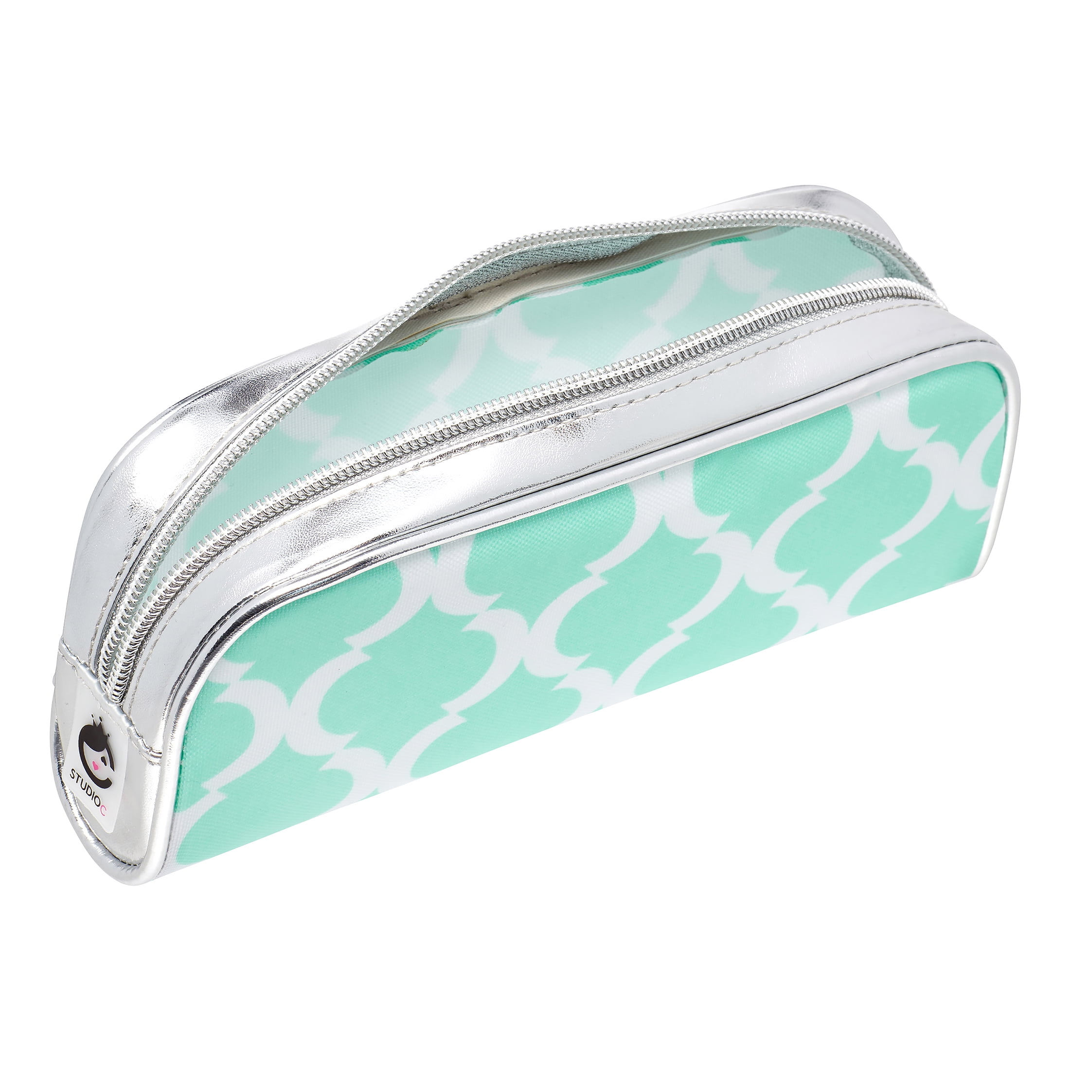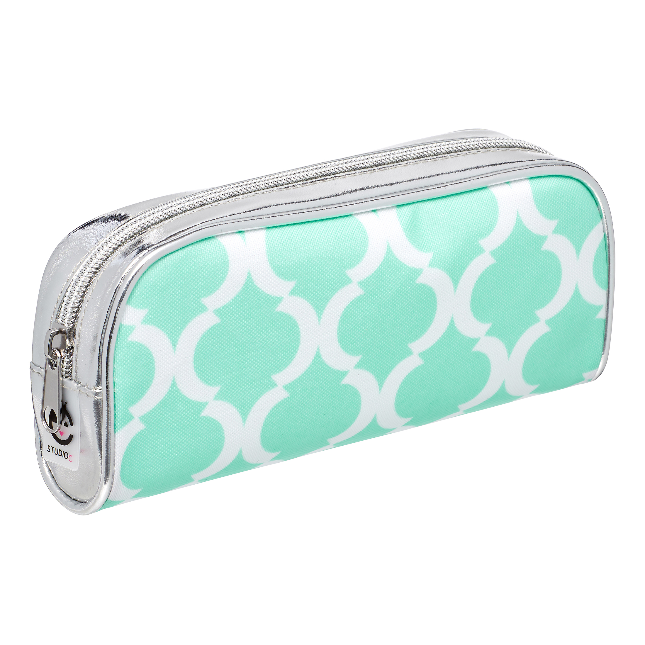 With limitless possibilities, the Studio C Pattern Play Personal Clutch is a perfect option for storing and carrying your daily essentials. Use it to store your stationery, make-up essentials, jewelry, or anything else options are unlimited. Its zippered closure ensures that contents remain safe. The mint with lattice design with silver zipper, and silver textured faux leather zipper tape and gusset add to its style. Made up of durable polyester material, the pouch features a laminated finish, which is easy to clean. The pouch measures 8.125 x 4 inches in size and can be easily carried in your handbag or backpack.