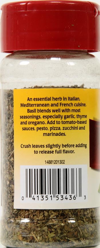 Tone’s Sweet Leaf Basil is a useful addition to your kitchen pantry. It’s dried to have a longer shelf life, and it’s easy to rehydrate. Just use equal amounts of this Tone’s seasoning in place of freshly chopped herbs for any recipe. This delicious herb is a staple of Italian and other Mediterranean cuisines. It goes well on pizza, lasagna, marinara sauce and in dressings. You can combine it with other herbs to create your own delicious blend. Tone’s has over 140 years of experience in bringing you high-quality seasonings.Tone’s Sweet Leaf Basil: