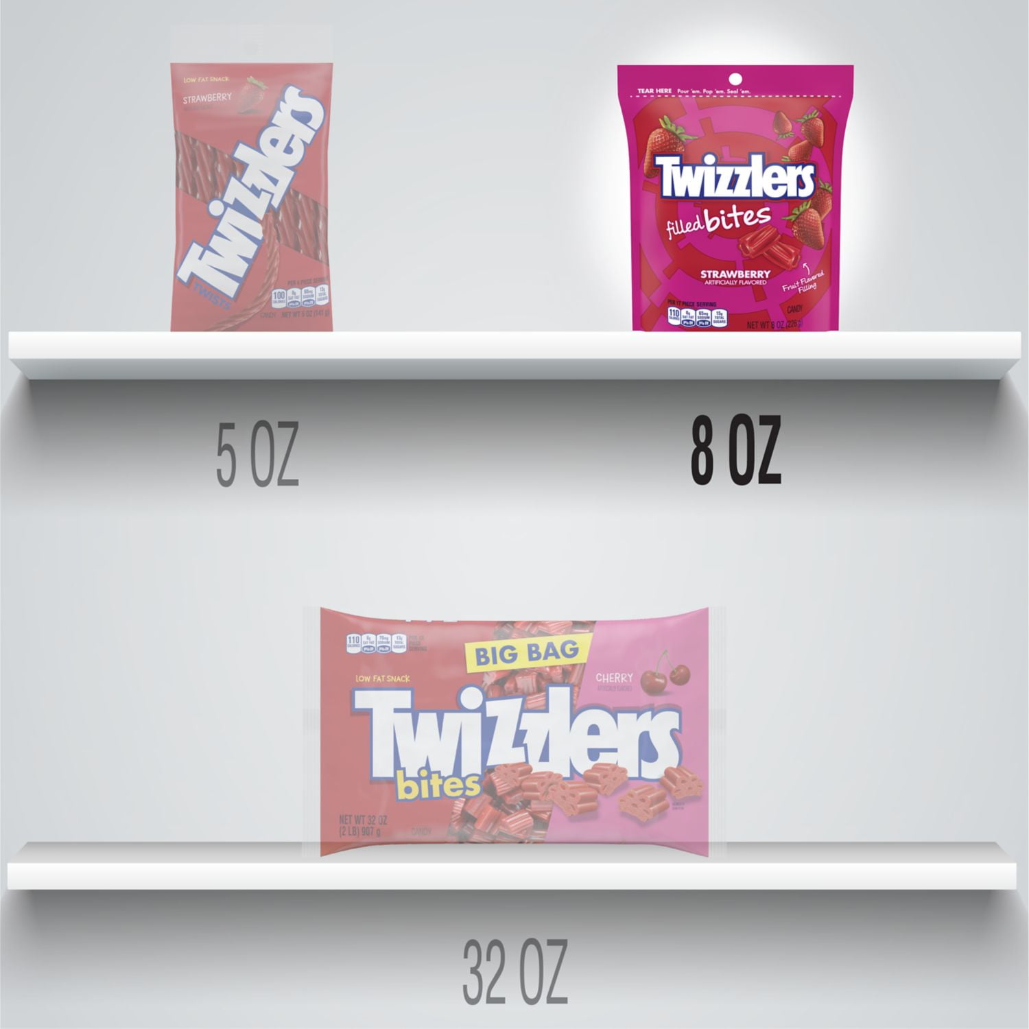 - Contains one (1) 8-ounce resealable bag of TWIZZLERS Filled Bites Strawberry Flavored Chewy Candy