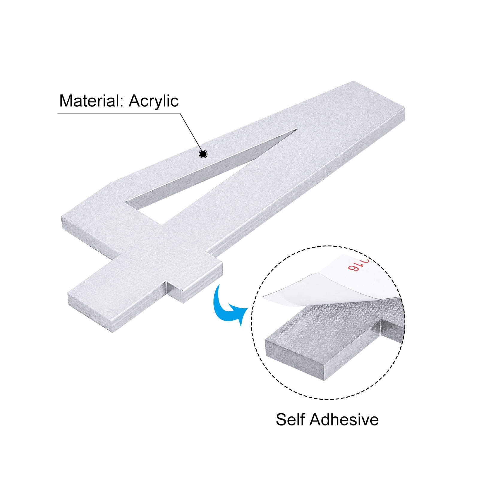 Uxcell 4.72 Inch Acrylic 3D Self-Adhesive House Number for Home Hotel Mailbox Address, Silver Number 4
