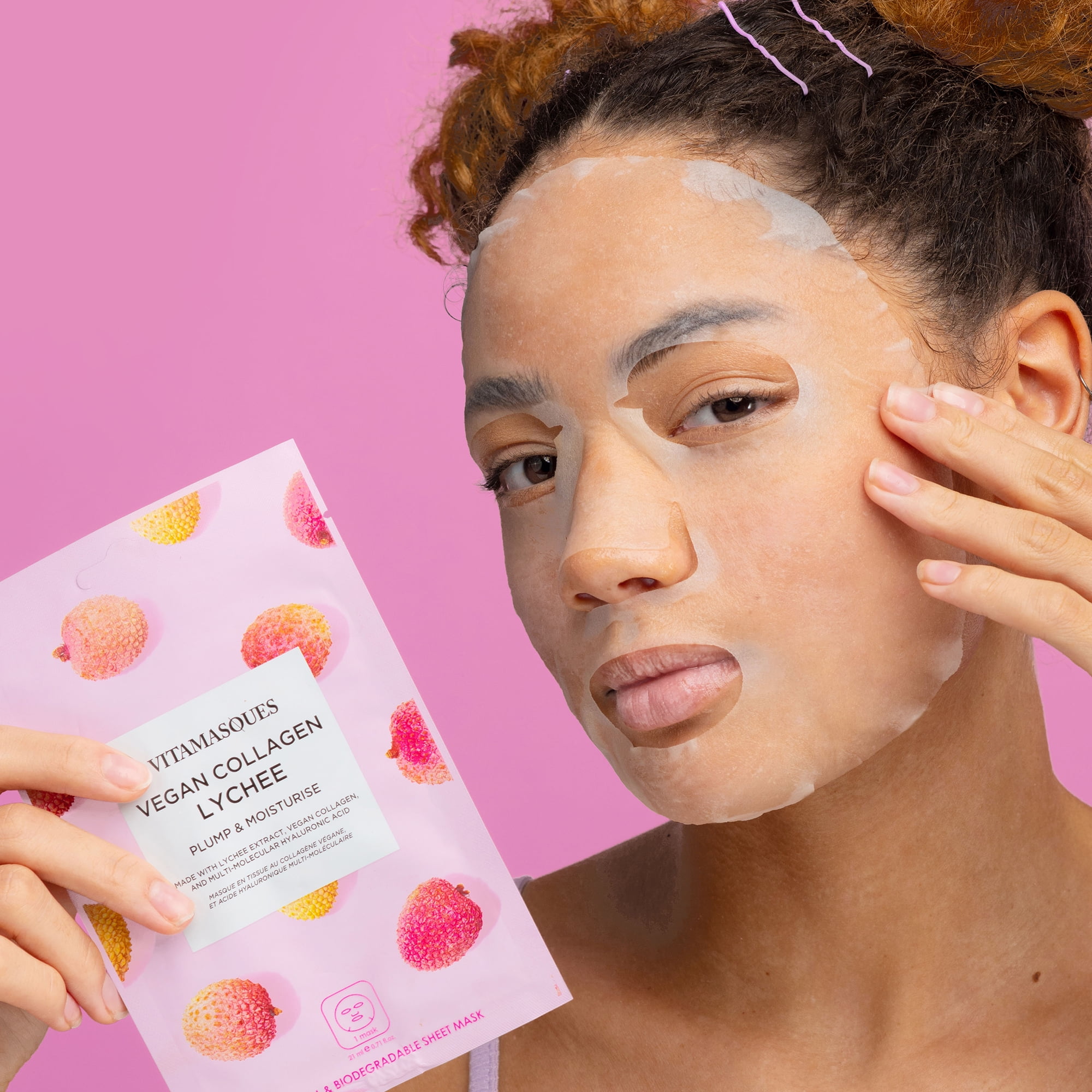 Vitamasques Biodegradable Vegan Collage Lychee Mask, Plump & Moisturise, One Sheet Mask