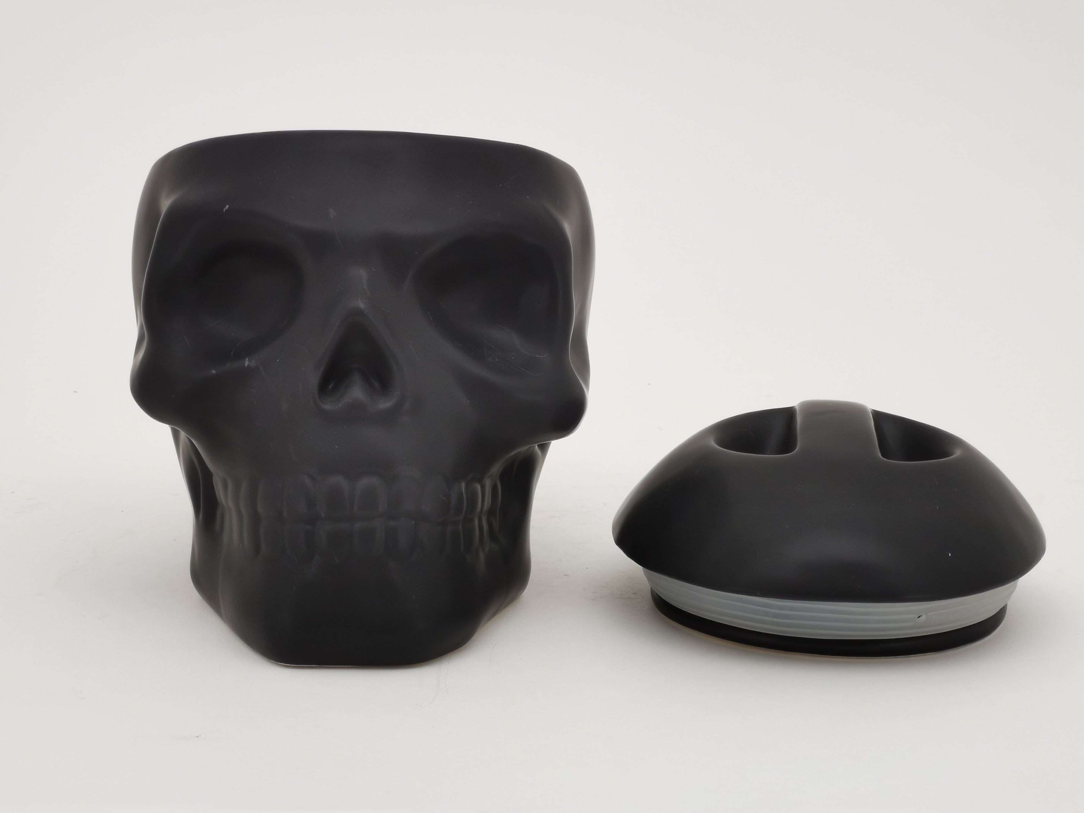 This black Earthenware ceramic treat jar shows off the spooky spirit with its hand painted black finish. Display this during the Halloween season to show off your festive side! Perfect for handing out candy the night of Halloween, or having some on hand for snacking during the weeks leading up. With a capacity of about 20 oz, you can fit all of the candy in the world in this sleek item.