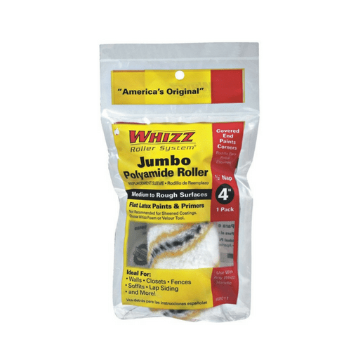 For flat and low sheen paints and primers. Works on all Whizz handles for 4" and 6". Best choice for textured surface. Ultra low splatter. Covered end paints corner. For walls, closets, fences, soffits, lap, siding and more.For flat and low sheen paints and primers. Works on all Whizz handles for 4" and 6". Best choice for textured surface. Ultra low splatter.