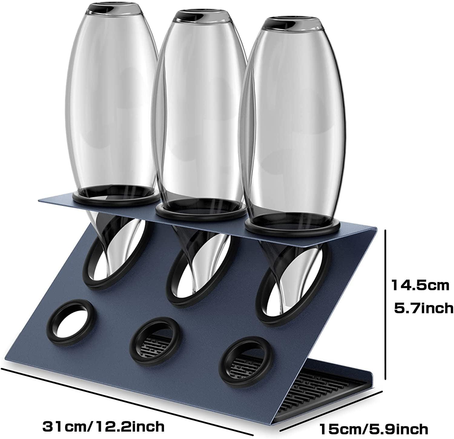 Yafan Bottle Stand, Stainless Steel Bottle Drying Rack for Soda Stream, 3-Hole Soda Bottle Drain Rack Drip Rack Crystal, Black