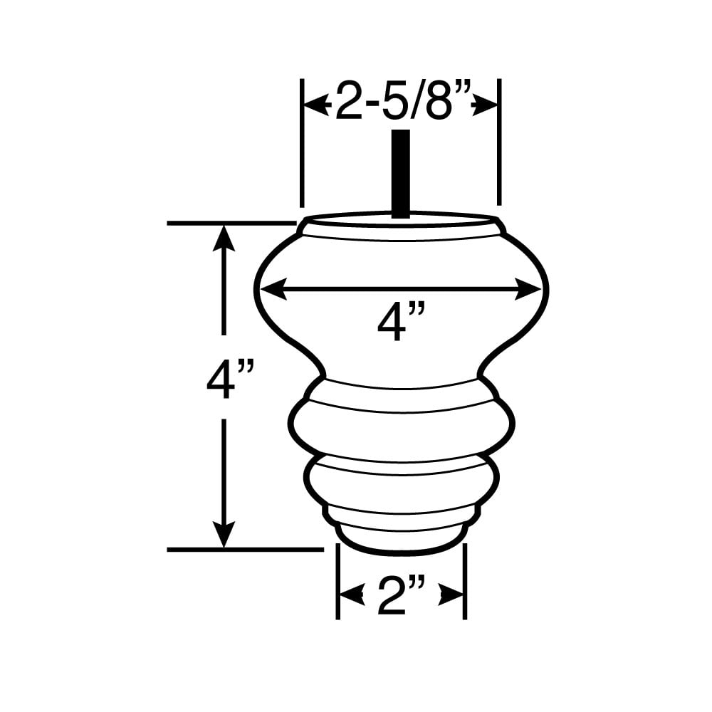 4in H x 4in Dia | Unfinished Solid Hardwood | Sofa and Chair Bun Foot Leg