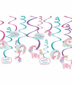 Unicorn ‘Enchanted Unicorn’ Foil Hanging Swirl Decorations (12ct)