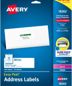 Avery Address Labels, White, 1-1/3′ x 4′, Easy Peel, Laser, Inkjet, 140 Labels (18262)