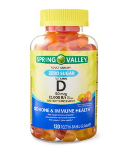 Spring Valley Zero Sugar Vitamin D, 2,000 IU Adult Pectin-Based Gummies, Assorted Fruit, 120 Count