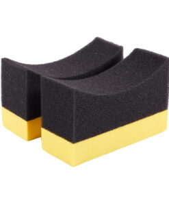 2x Contoured Auto Wheels Brush Sponge Tools Applicator Special For Tire Hub Cleaning Dressing Waxing Polishing Yellow+Black