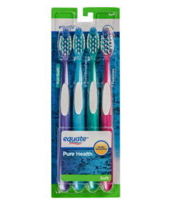 Equate Pure Health Manual Soft Toothbrush with Tongue and Cheek Cleaner 4 Count