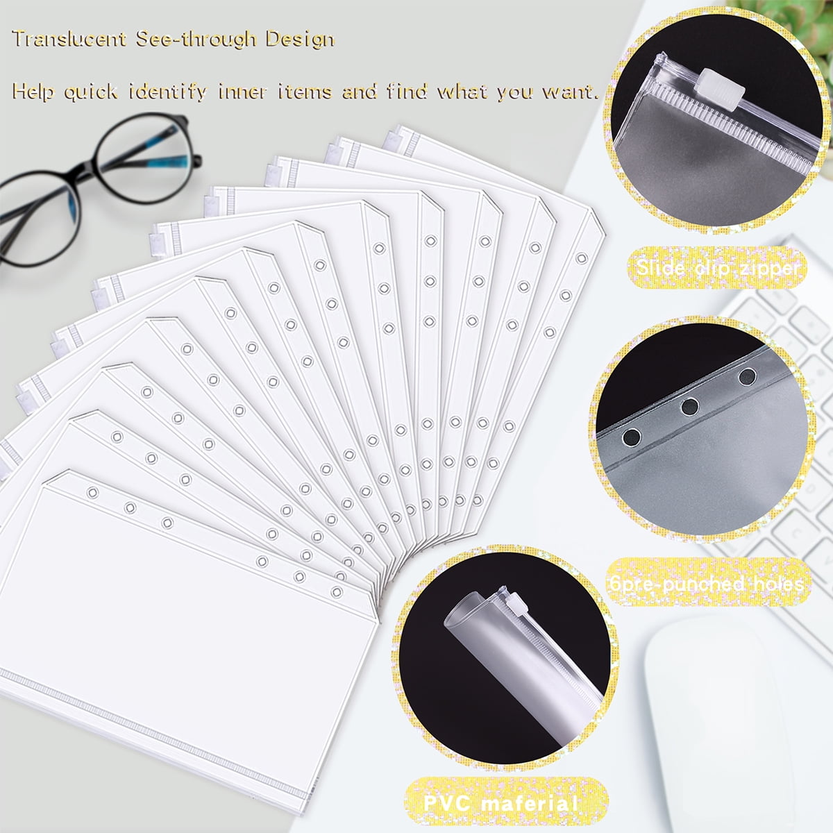 - [12pcs Zipper Bags] The transparent zipper bags for budgeting with sealed smooth zipper to protect inner items from water and dust. They can be used for travel diaries, personal organizers, budget planners, etc. You can easily classify and manage your money according to different expenditure with the label stickers.