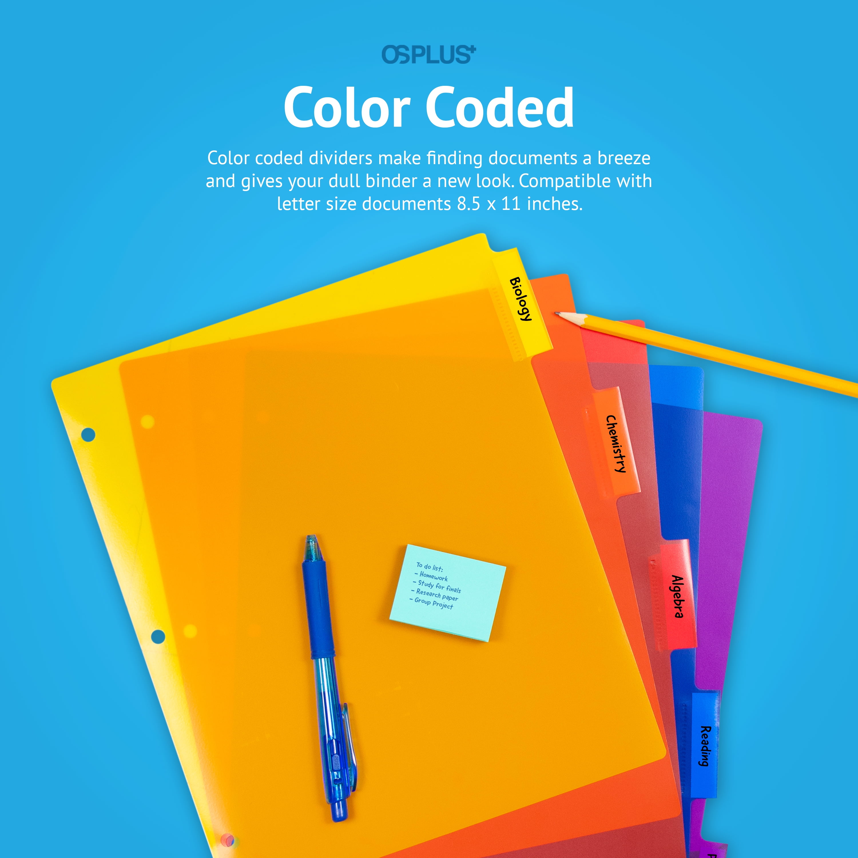 OS Plus 5-Tab Plastic Binder Dividers, Insertable Multicolor Big Tabs