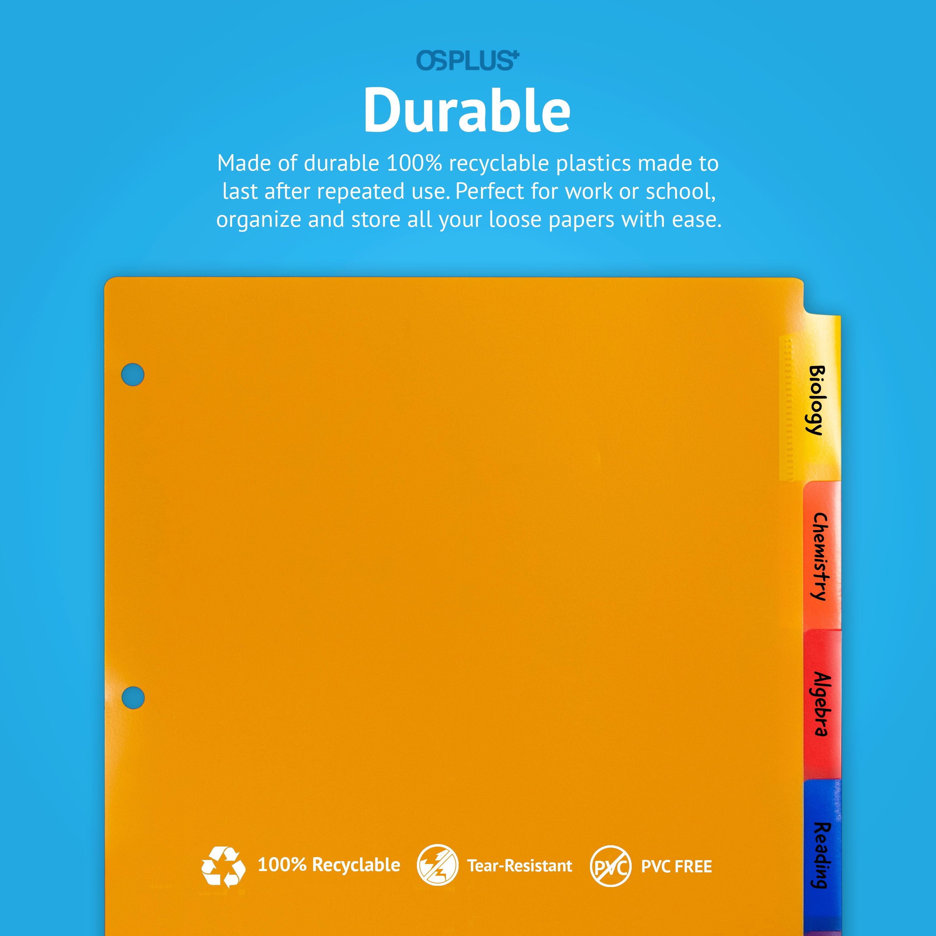 - Durability: Made of extra durable recyclable plastic, designed to stand up to the abuse of everyday use. Perfect for the office, home, work, or school, these dividers will last. Durable plastic makes it easy to clean and reuse these dividers for multiple projects.