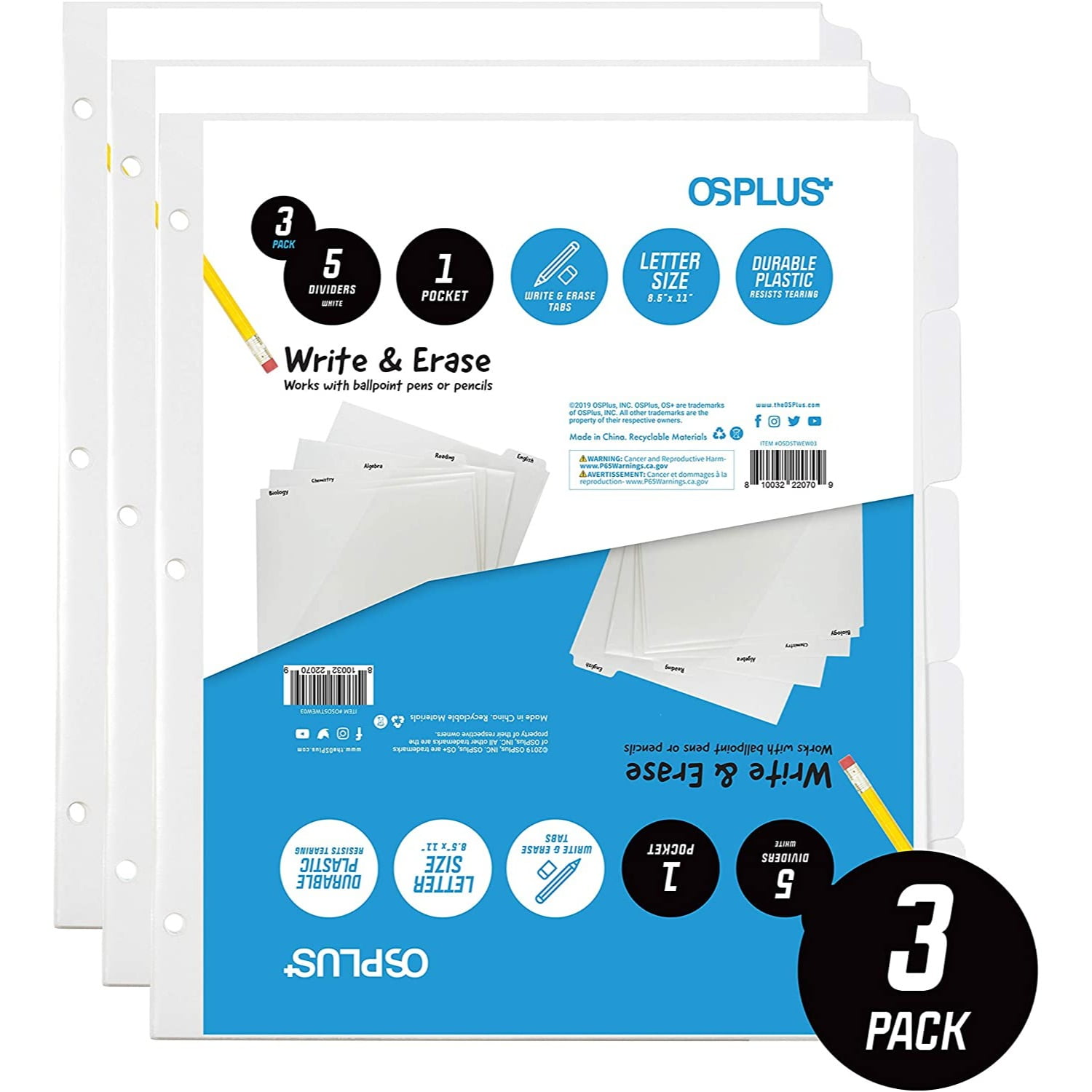 OS Plus 5-Tab Plastic Binder Dividers, Insertable Multicolor Big Tabs